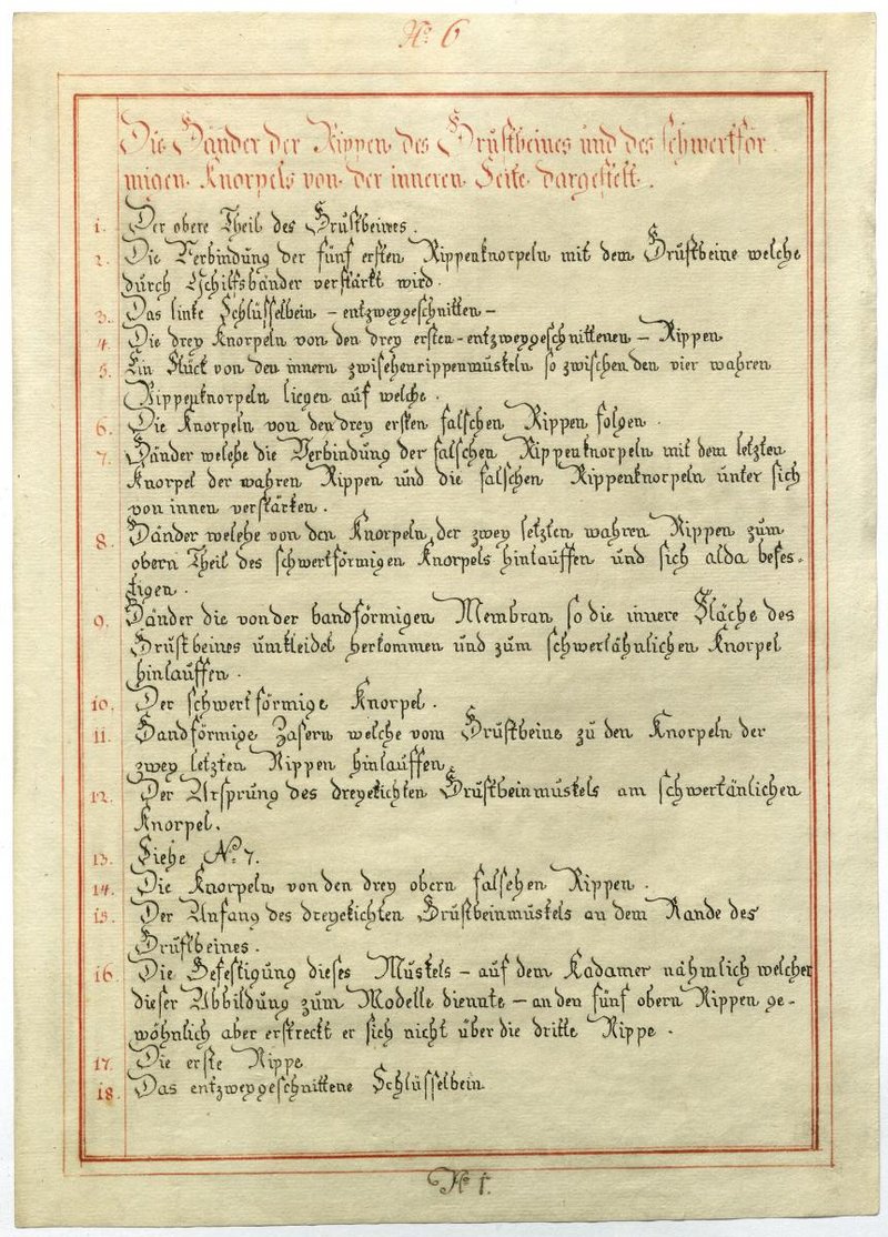 Der Text ist die ergänzende Beschreibung in deutscher Sprache zum anatomischen Wachsmodell des Brustbeines und der Rippen.