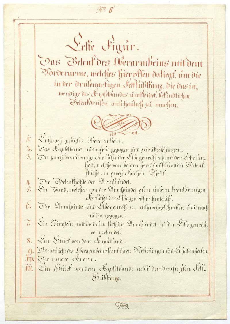 Der Text ist die ergänzende Beschreibung in deutscher Sprache zum anatomischen Wachsmodell des Unterarms, Ellenbogens und Handgelenks.
