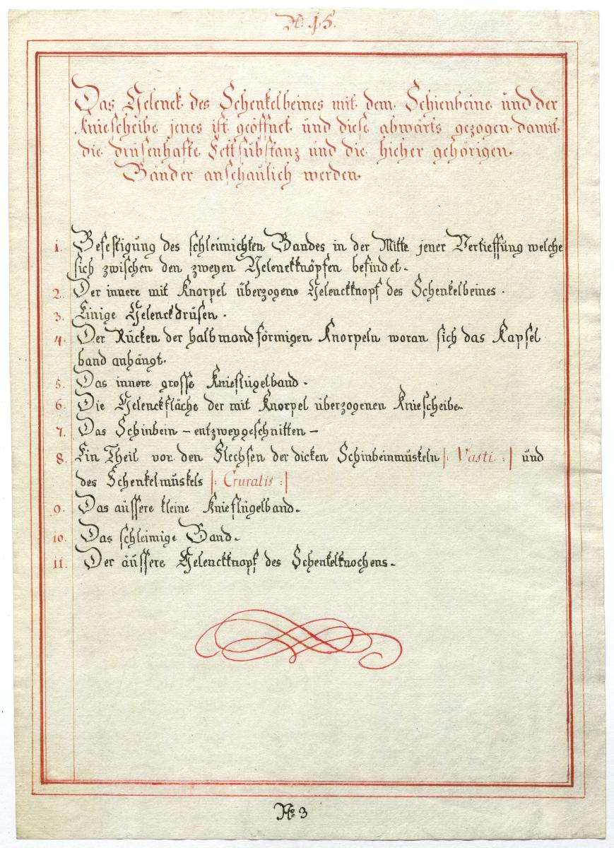 Der Text ist die ergänzende Beschreibung in deutscher Sprache zum anatomischen Wachsmodell des Knies.