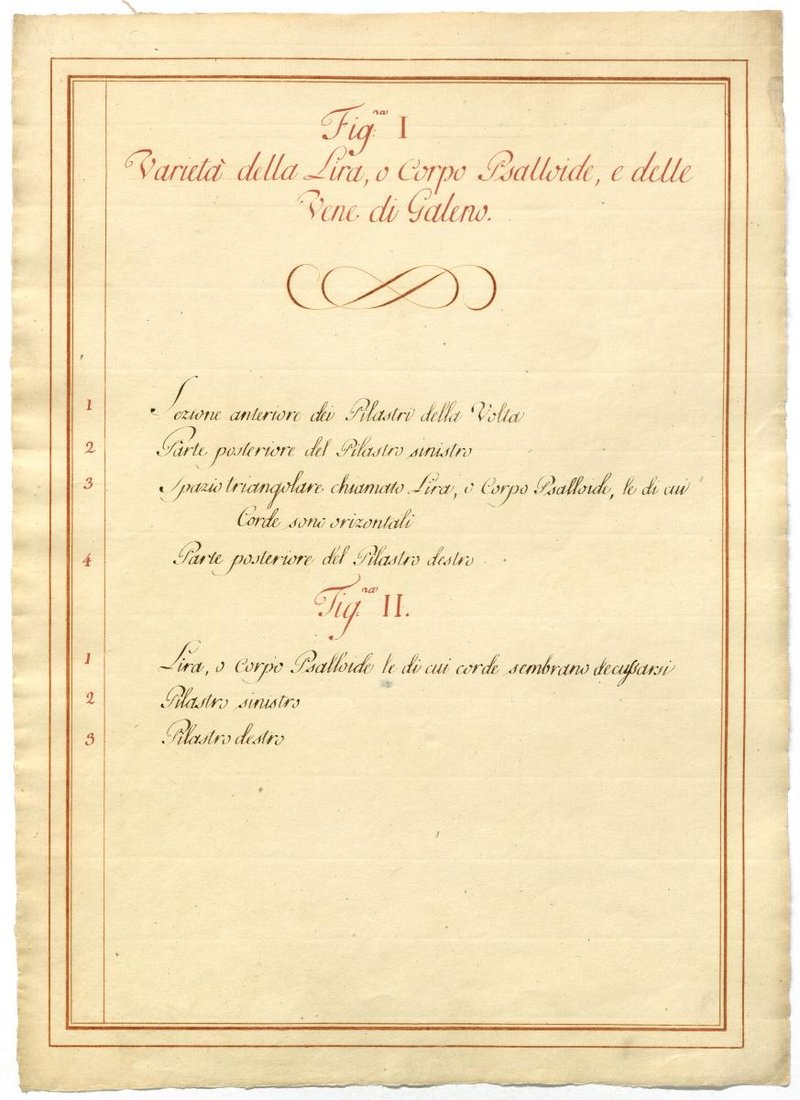 Der Text ist die ergänzende Beschreibung in italienischer Sprache zum anatomischen Wachsmodell des Hirnes.