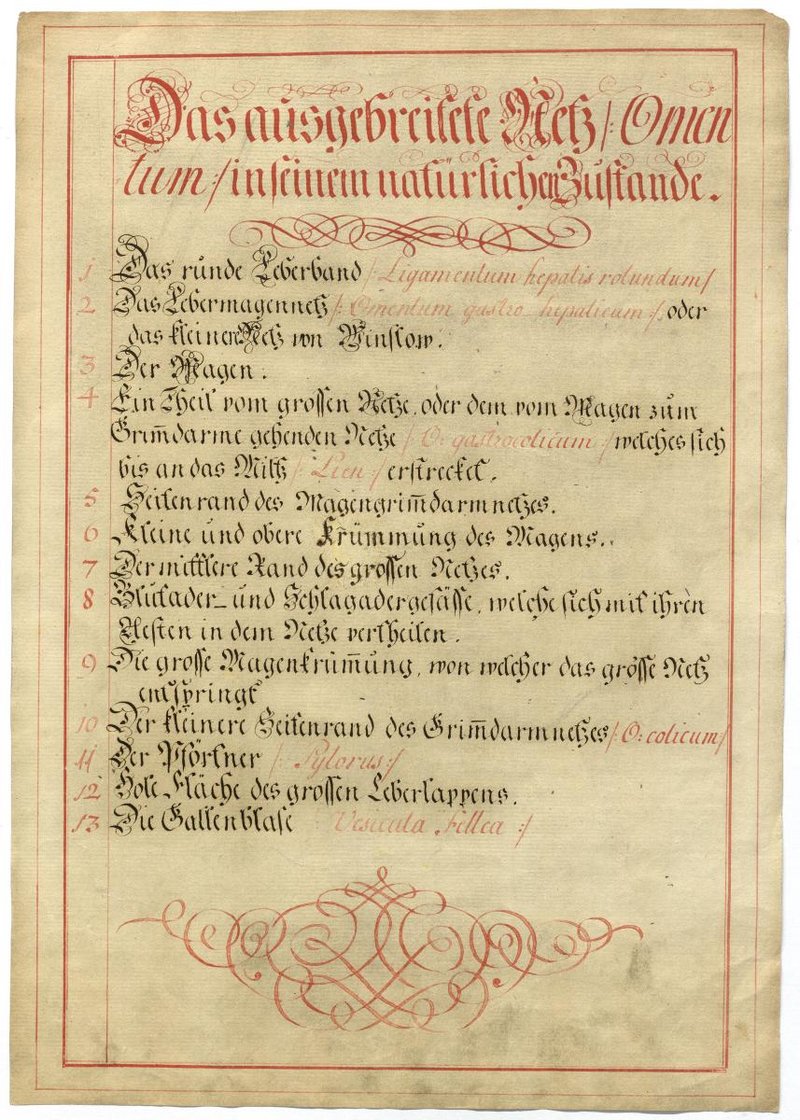 Der Text ist die ergänzende Beschreibung in deutscher Sprache zum anatomischen Wachsmodell des großen und kleinen Netzes.