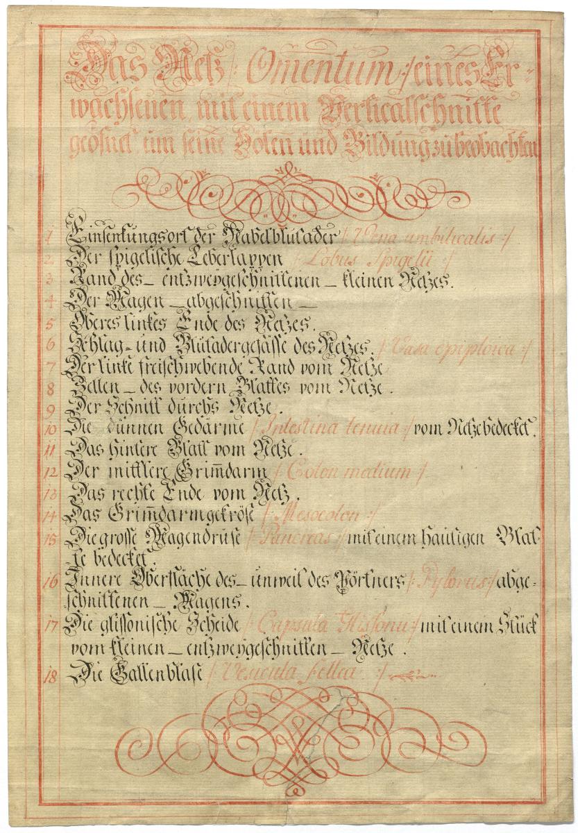 Der Text ist die ergänzende Beschreibung in deutscher Sprache zum anatomischen Wachsmodell des großen und kleinen Netzes.