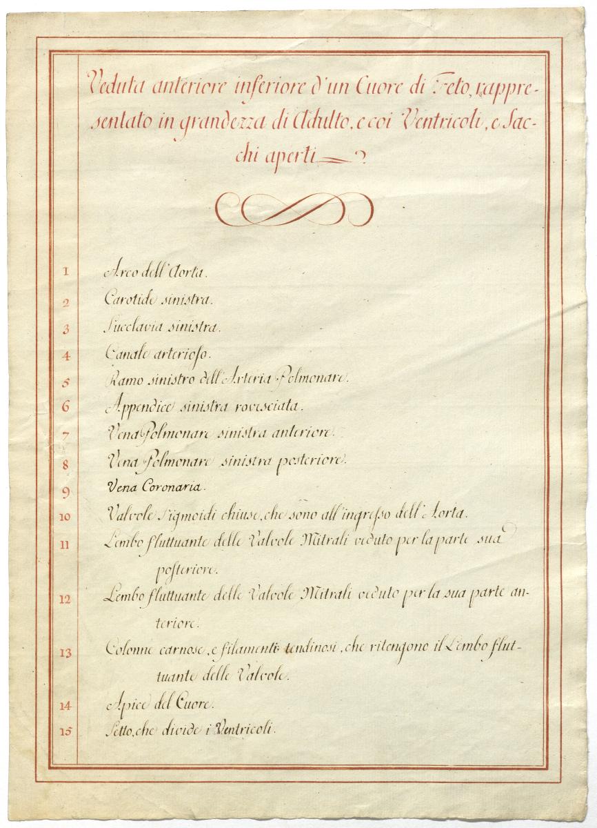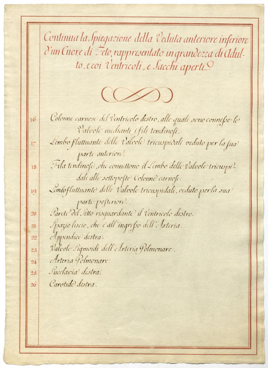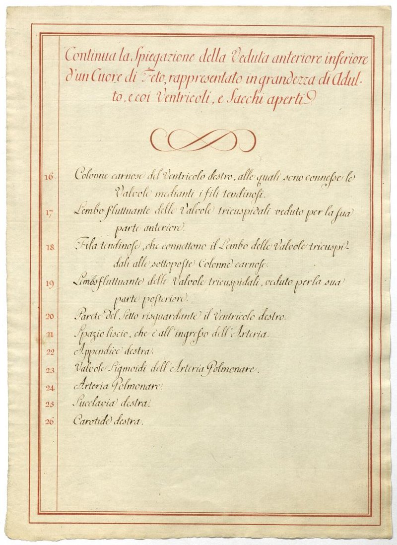 Der Text ist die ergänzende Beschreibung in italienischer Sprache zum anatomischen Wachsmodell der Kurzschlüsse des Fetalkreislaufes.