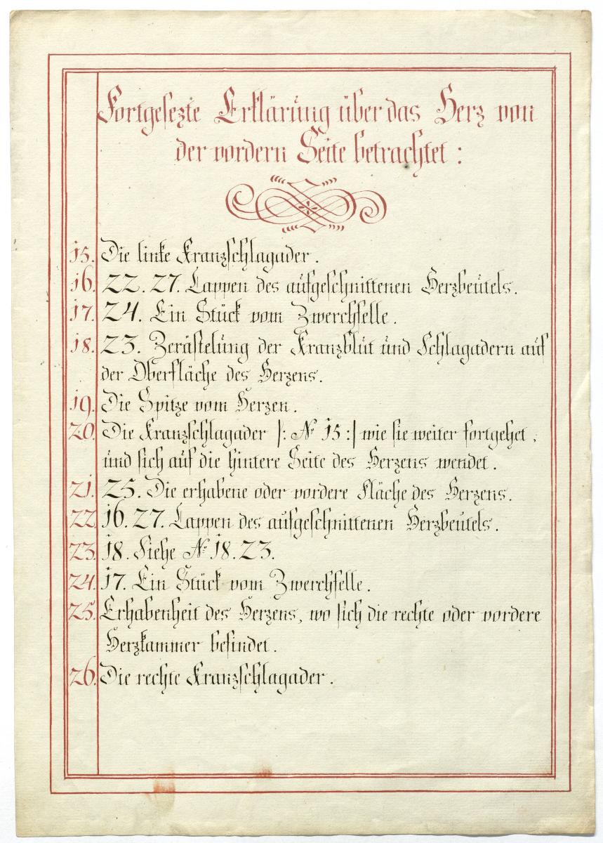 Der Text ist die ergänzende Beschreibung in deutscher Sprache zum anatomischen Wachsmodell des Herzens.