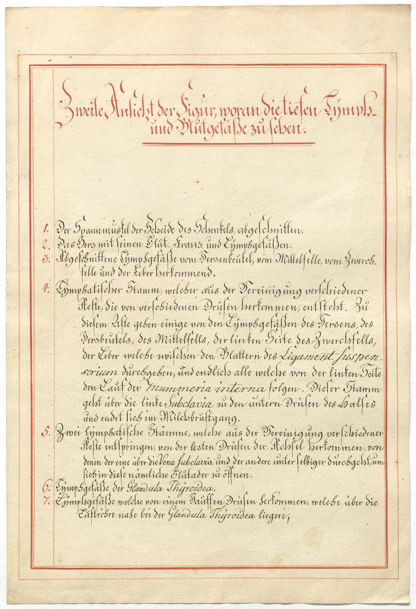 Der Text ist die ergänzende Beschreibung in deutscher Sprache zum anatomischen Wachsmodell der Blut- und Lymphgefäße.