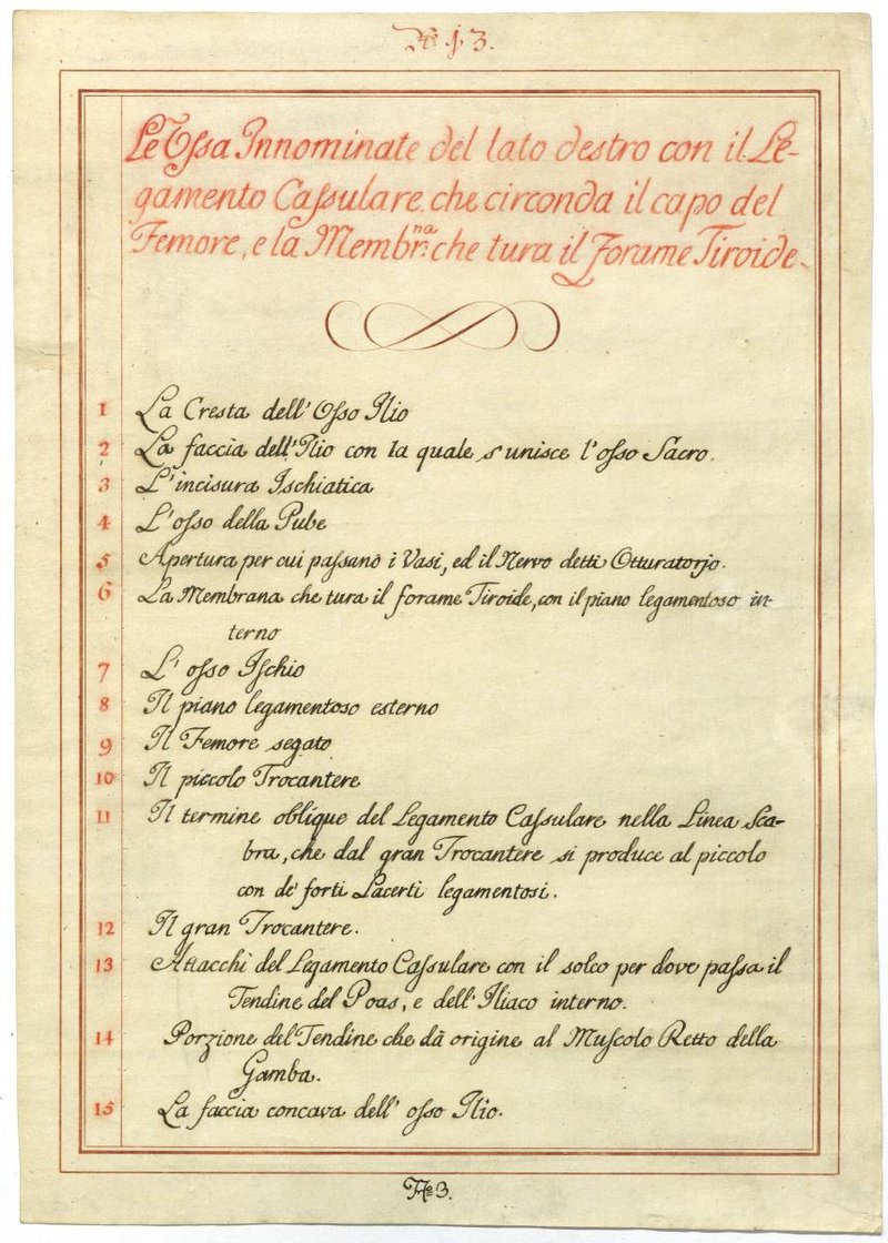 Der Text ist die ergänzende Beschreibung in italienischer Sprache zum anatomischen Wachsmodell des Hüftgelenks.