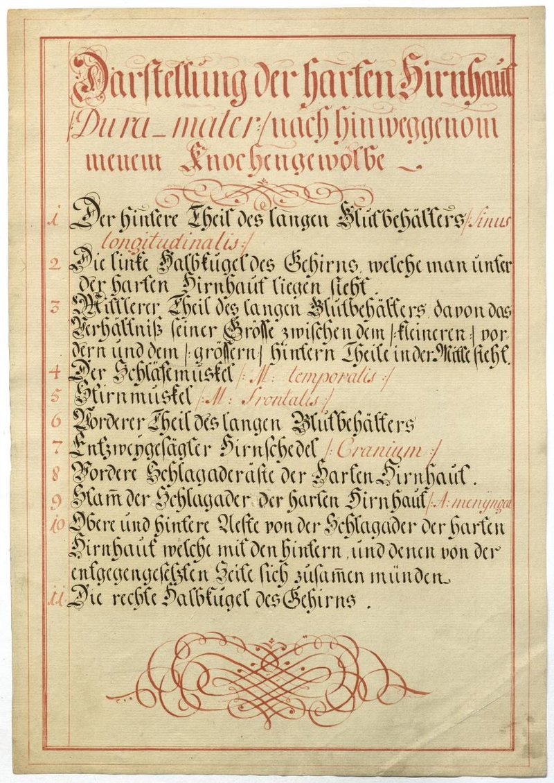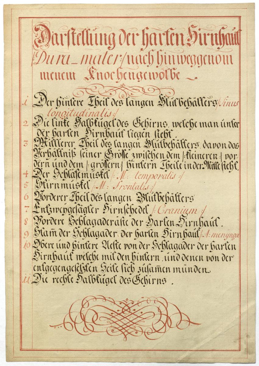 Der Text ist die ergänzende Beschreibung in deutscher Sprache zum anatomischen Wachsmodell des Gehirns.