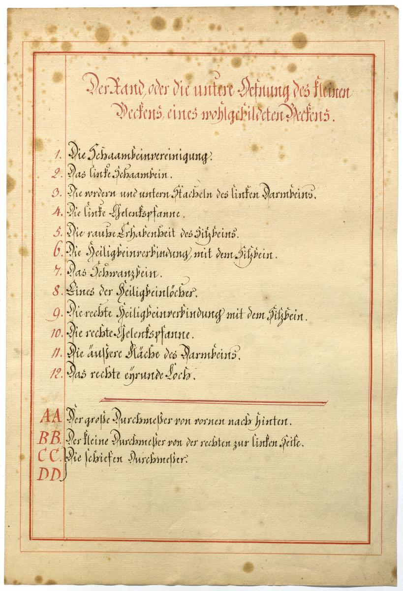 Der Text ist die ergänzende Beschreibung in deutscher Sprache zum anatomischen Wachsmodell eines weiblichen Beckens.
