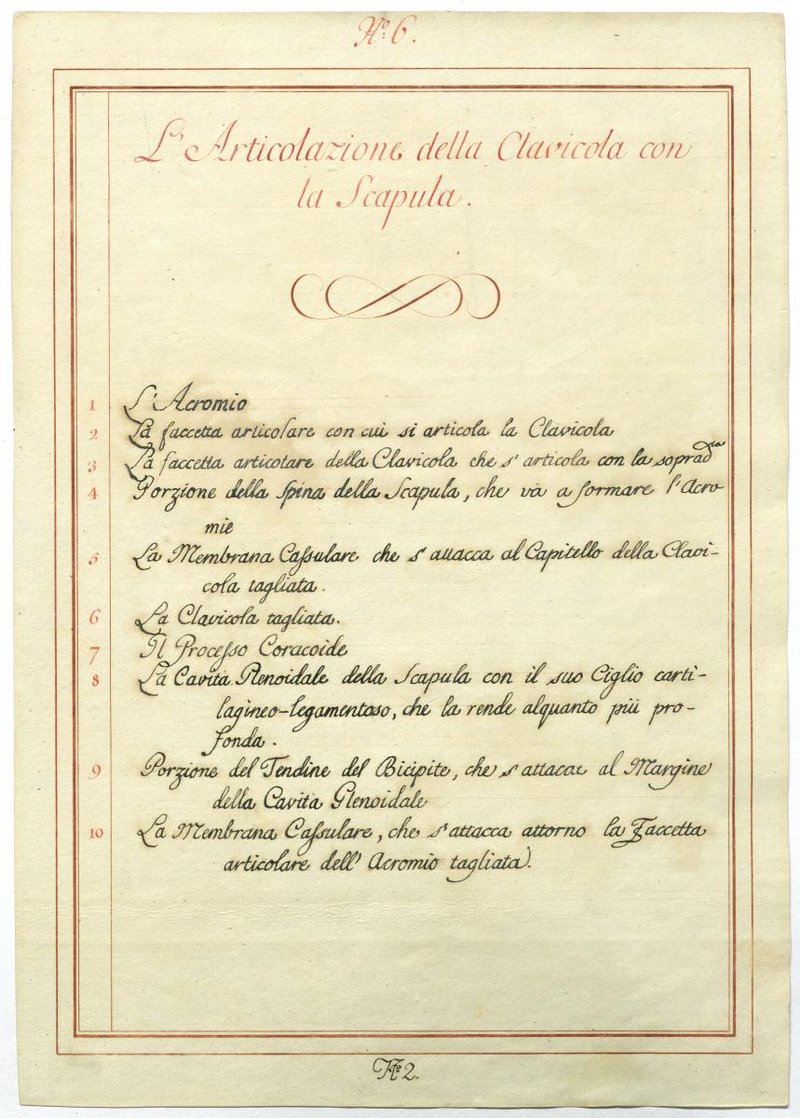 Der Text ist die ergänzende Beschreibung in italienischer Sprache zum anatomischen Wachsmodell des Brustbeines und der Rippen.