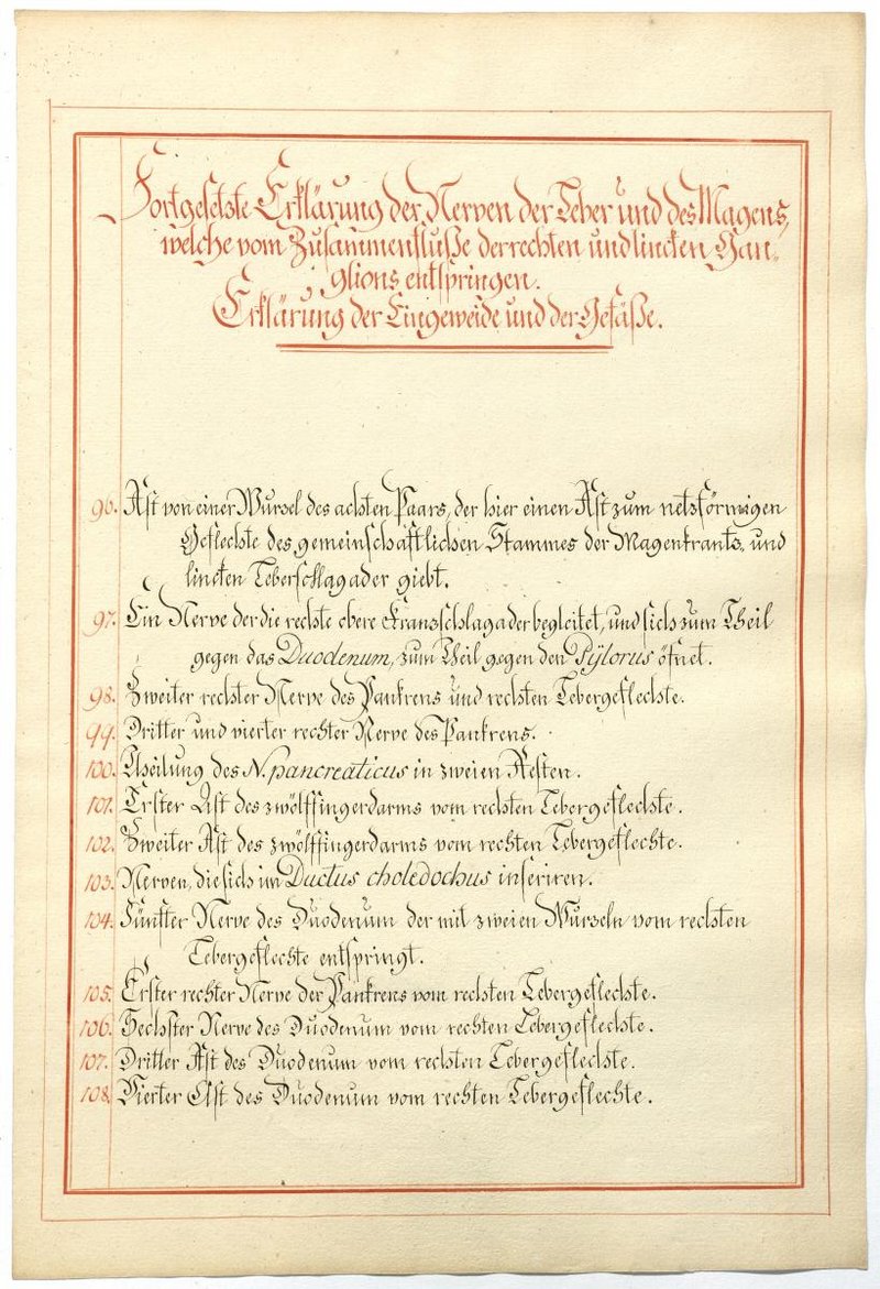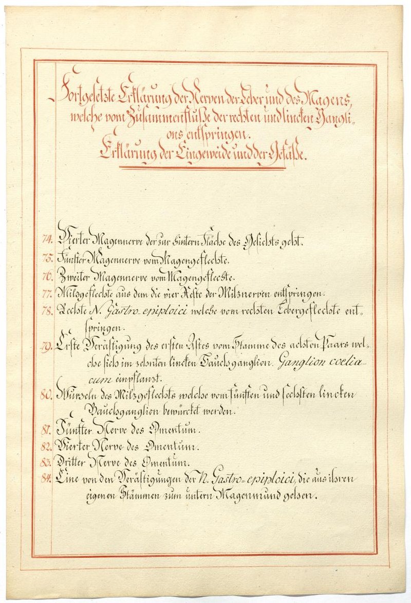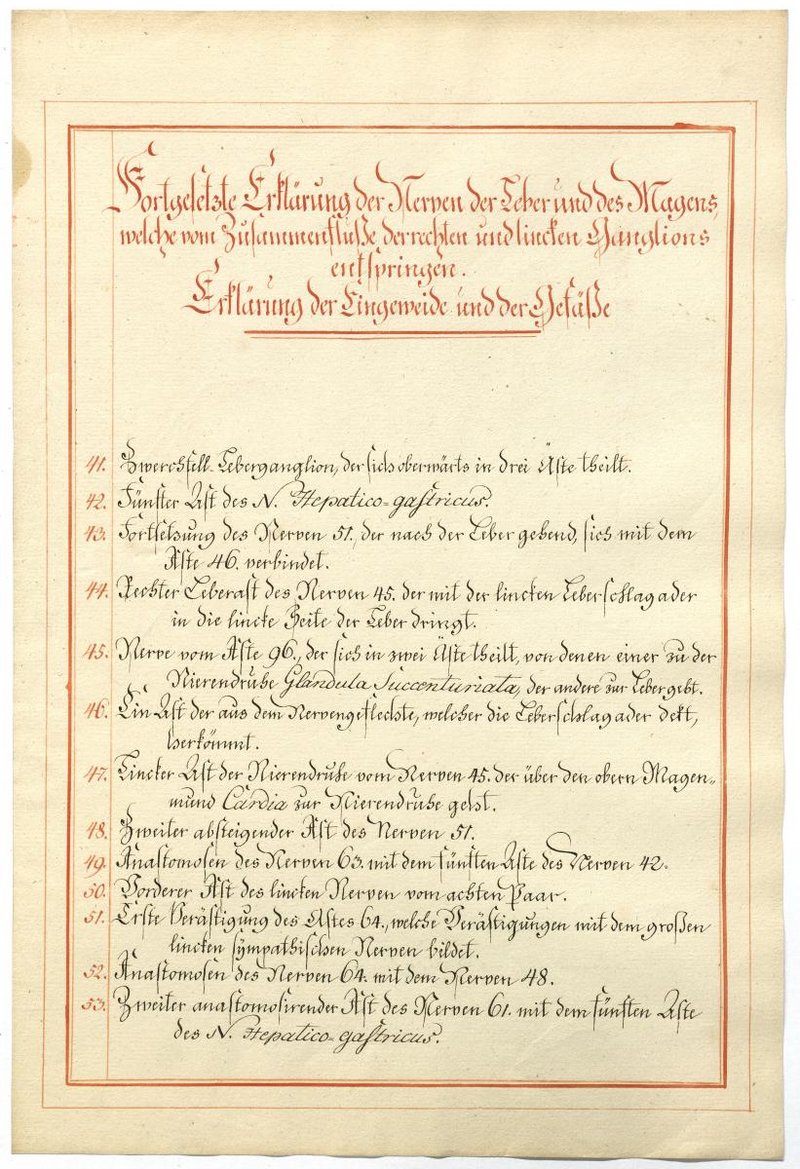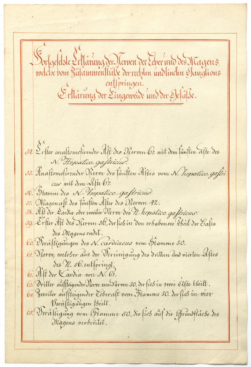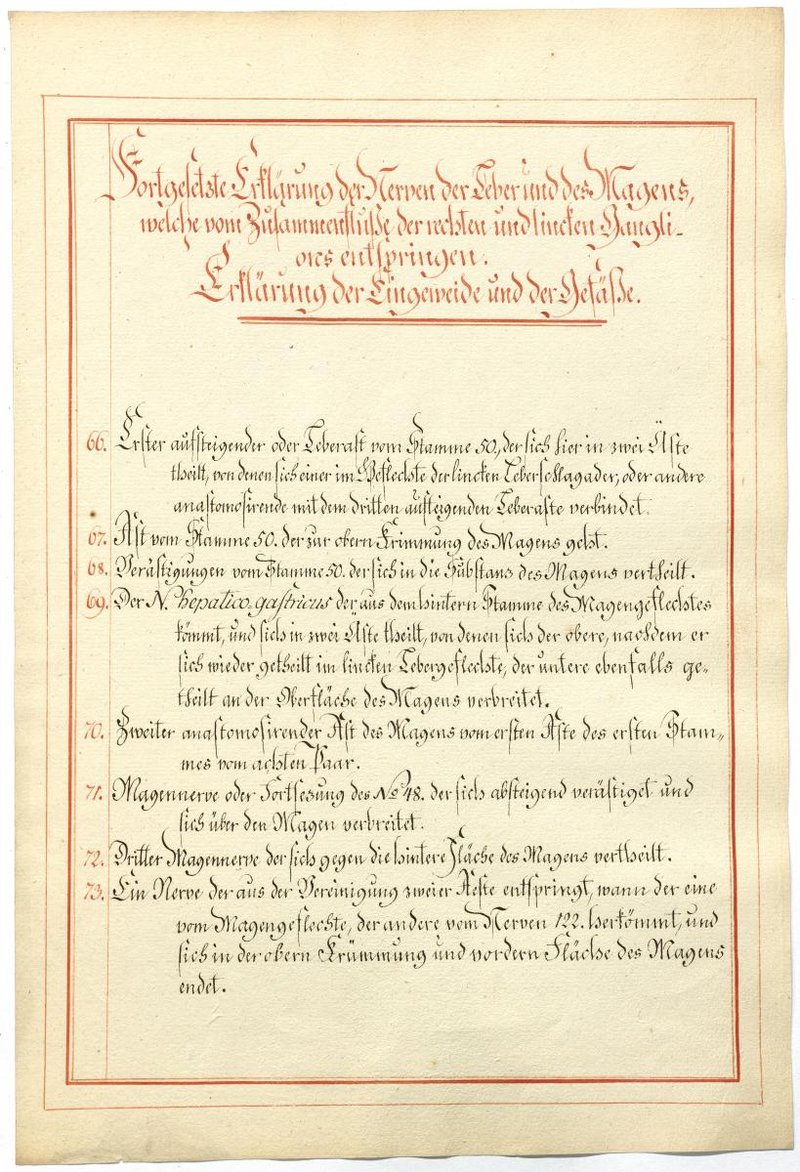 Der Text ist die ergänzende Beschreibung in deutscher Sprache zum anatomischen Wachsmodell der Innervation der Organe des Oberbauchs. Blatt 1 und 2 fehlen.