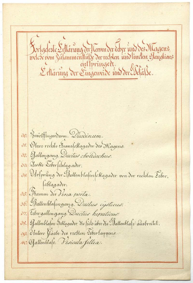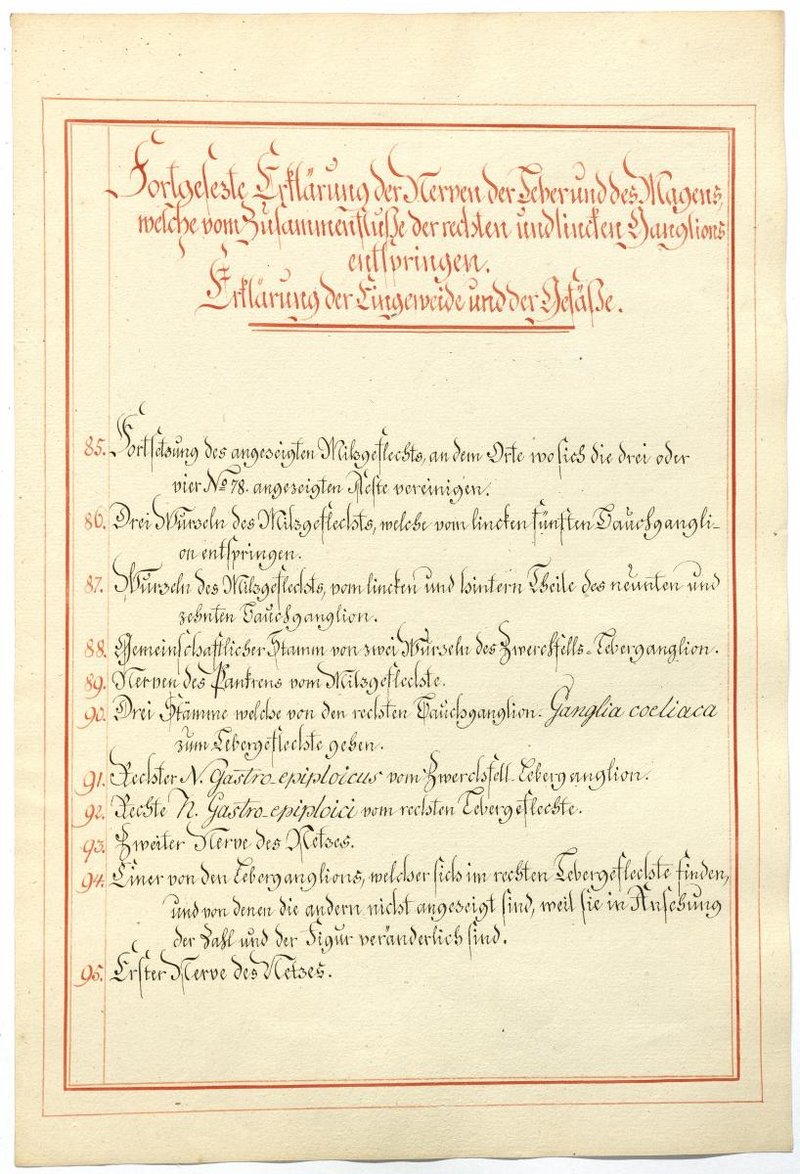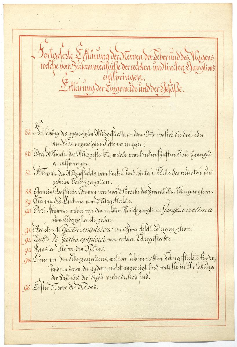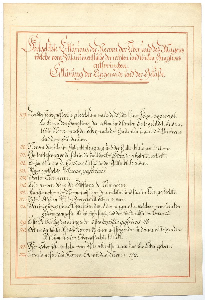 Der Text ist die ergänzende Beschreibung in deutscher Sprache zum anatomischen Wachsmodell der Innervation der Organe des Oberbauchs. Blatt 1 und 2 fehlen.