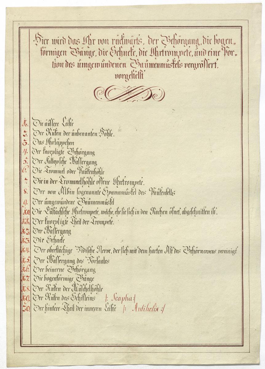 Der Text ist die ergänzende Beschreibung in deutscher Sprache zum anatomischen Wachsmodell des Ohres.