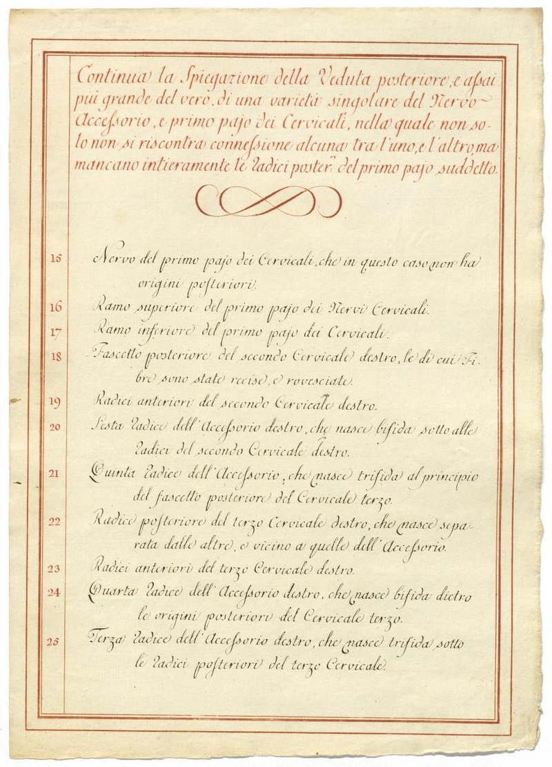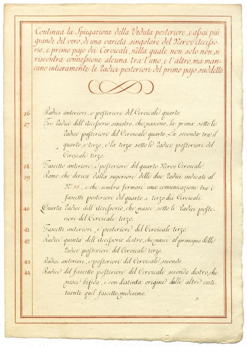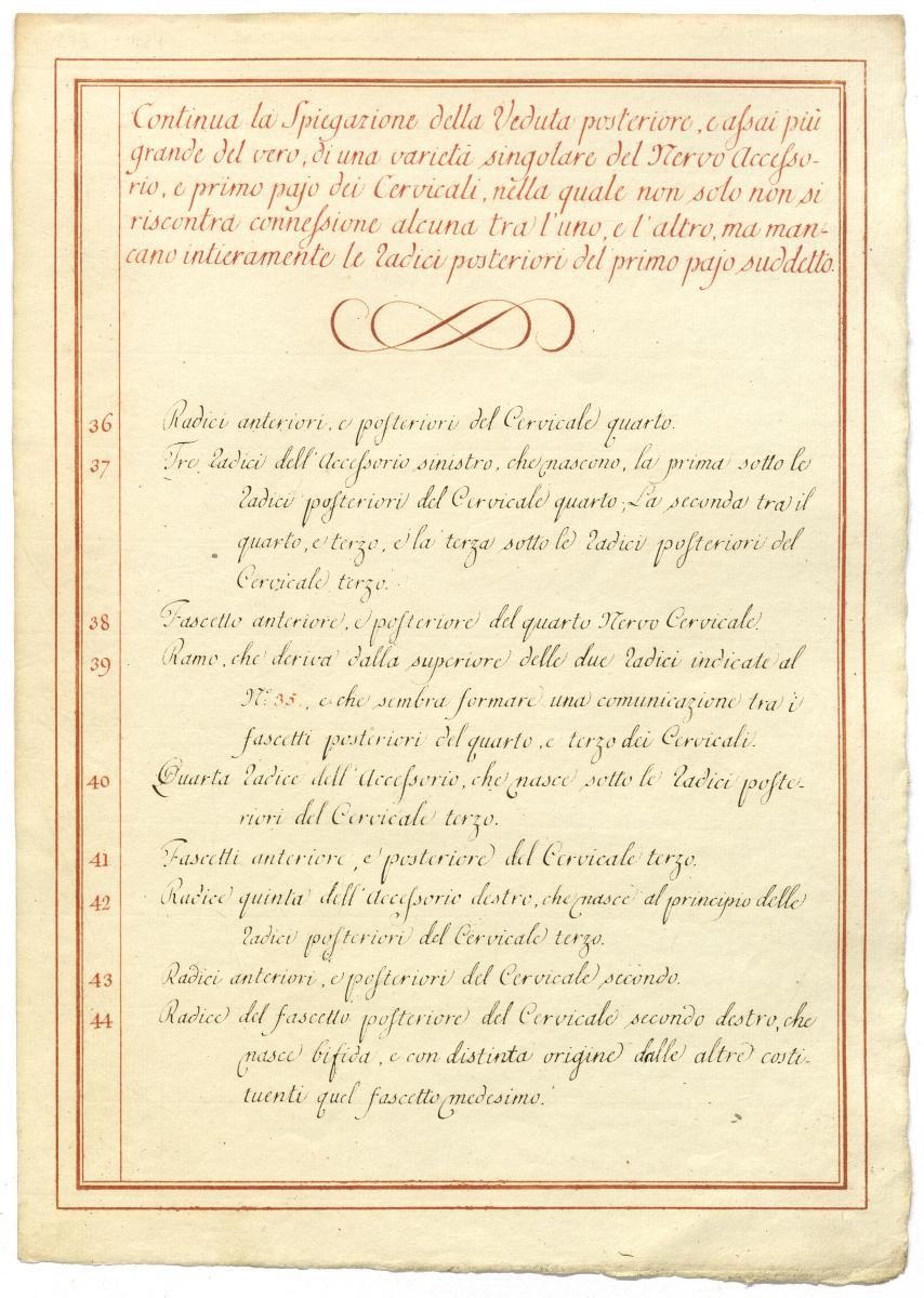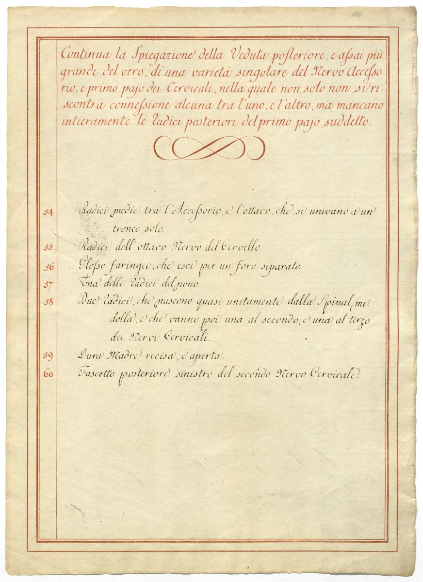 Der Text ist die ergänzende Beschreibung in italienischer Sprache zum anatomischen Wachsmodell des Nervus accessorius.