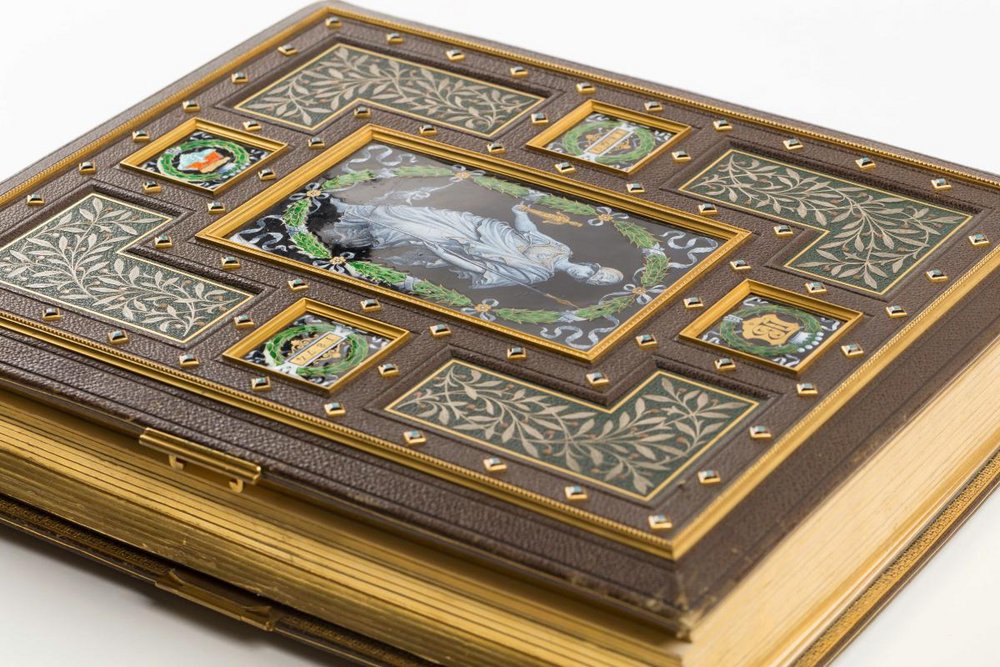 Emaille, Leder, Messing, Metall, Papier, Seide