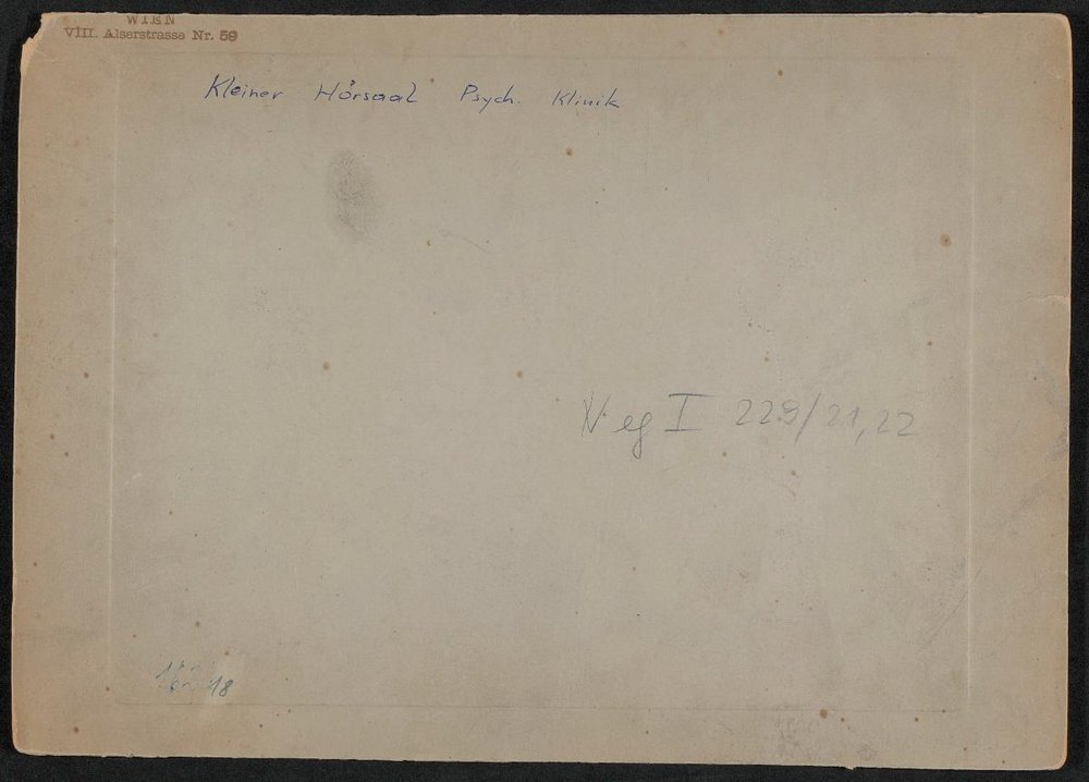 Aufgenommen im kleinen Hörsaal der Psychiatrischen Klinik. Neg. I. 229/21, 22. Neg. III. 20/5. Neg. (9x12) 1.104, 1.436, 1.721.