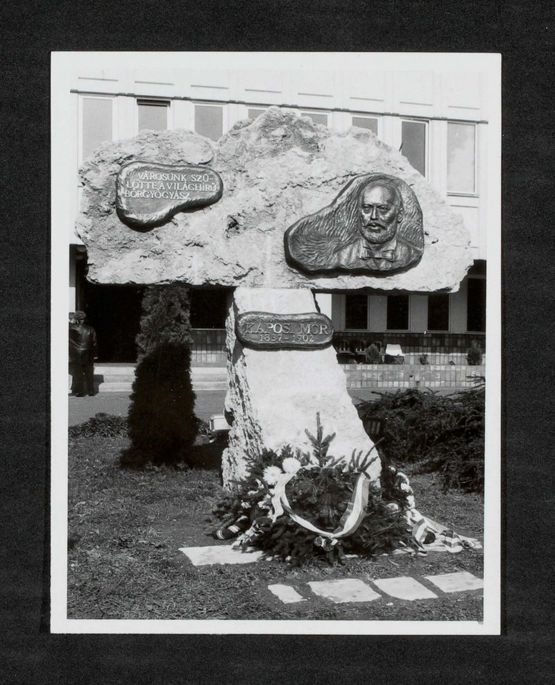 Das Denkmal ist von Jozef Kampfl angefertigt worden. Anlass war der 155. Geburtstag von Moriz Kaposi am 23. Oktober 1992.