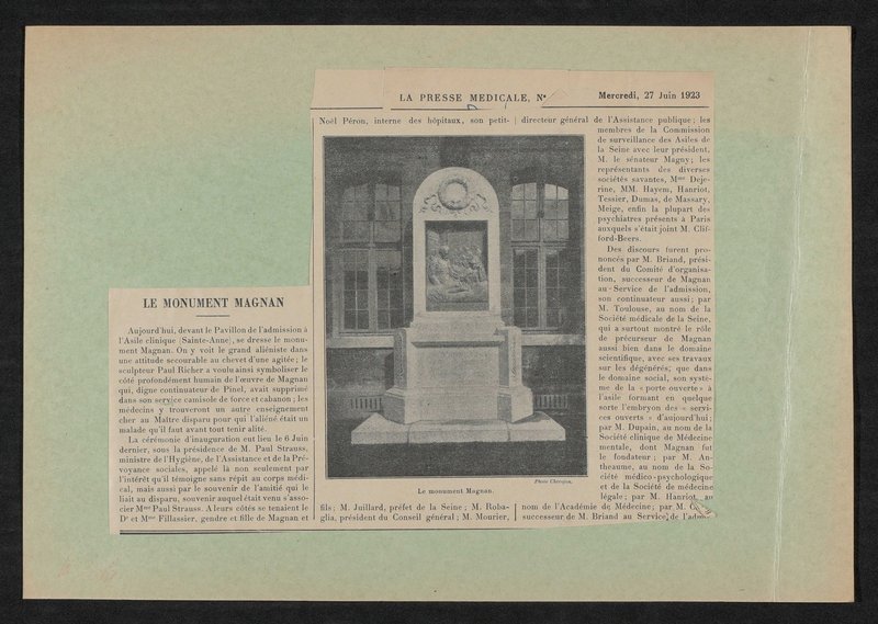 Ausschnitt aus: La Presse Medicale, 27. Juni 1923. Die Vorlage wurde von Studio Chevojon angefertigt.