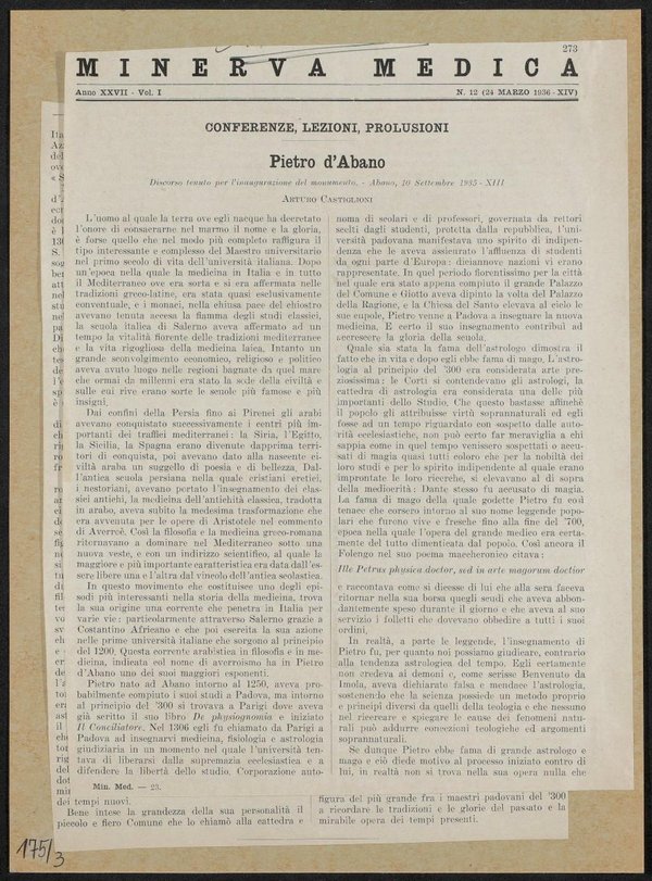 Minerva Medica. Medizinische Fachzeitschrift, Turin