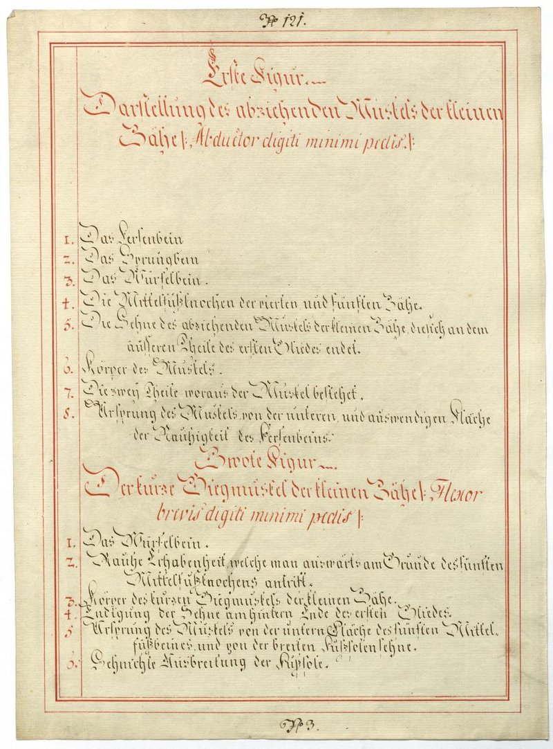 Der Text ist die ergänzende Beschreibung in deutscher Sprache zum anatomischen Wachsmodell der Detaildarstellungen von den Muskeln des Groß- und Kleinzehenballens.