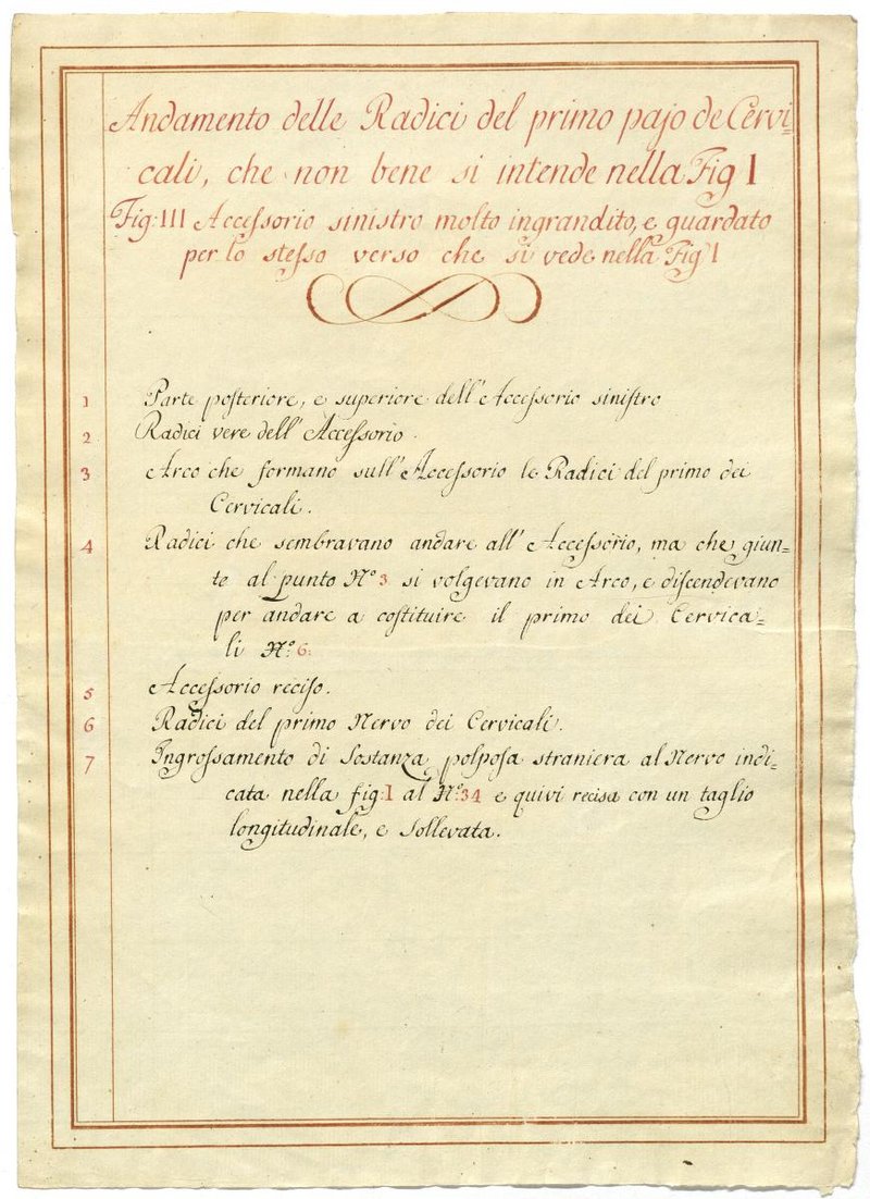 Der Text ist die ergänzende Beschreibung in italienischer Sprache zum anatomischen Wachsmodell des Nervus accessorius.