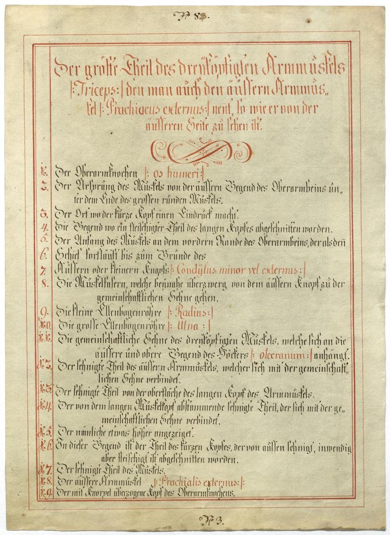 Der Text ist die ergänzende Beschreibung in deutscher Sprache zum anatomischen Wachsmodell des Ellenbogenstreckers.