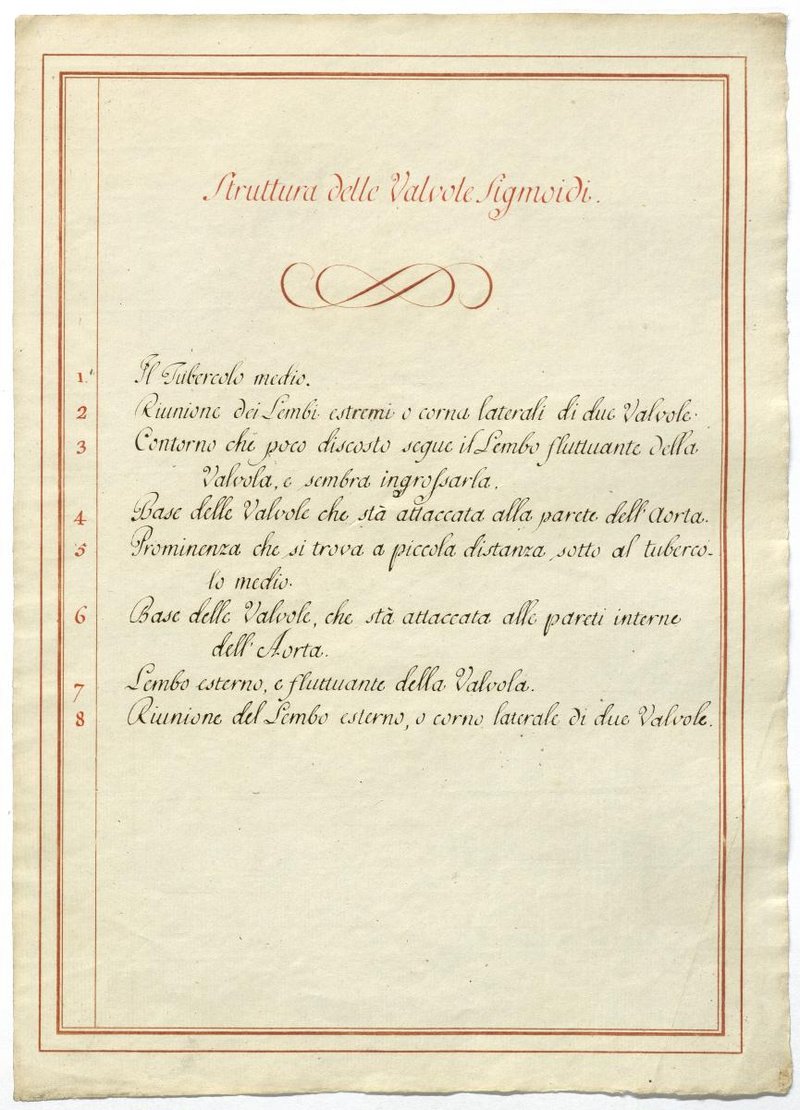 Der Text ist die ergänzende Beschreibung in italienischer Sprache zum anatomischen Wachsmodell des Herzens.