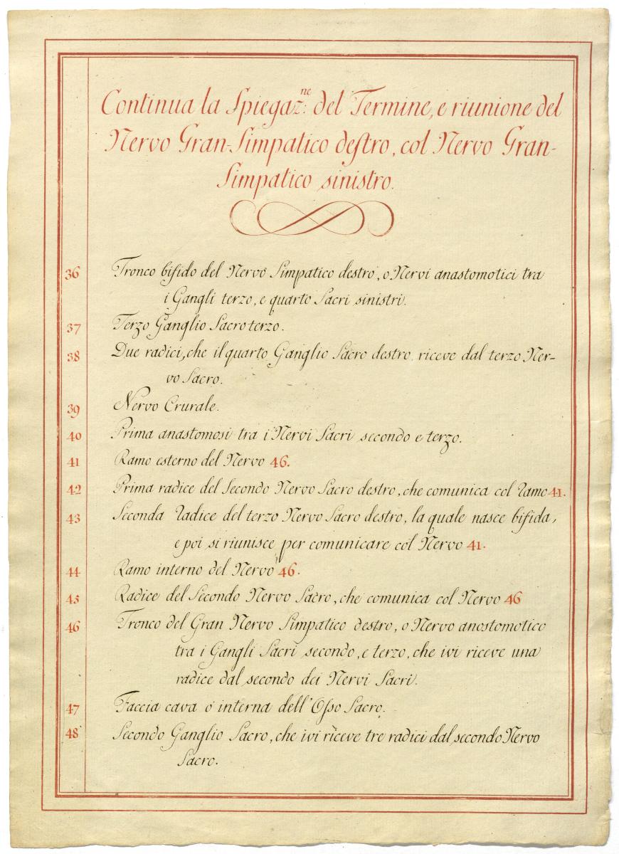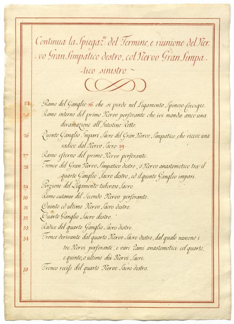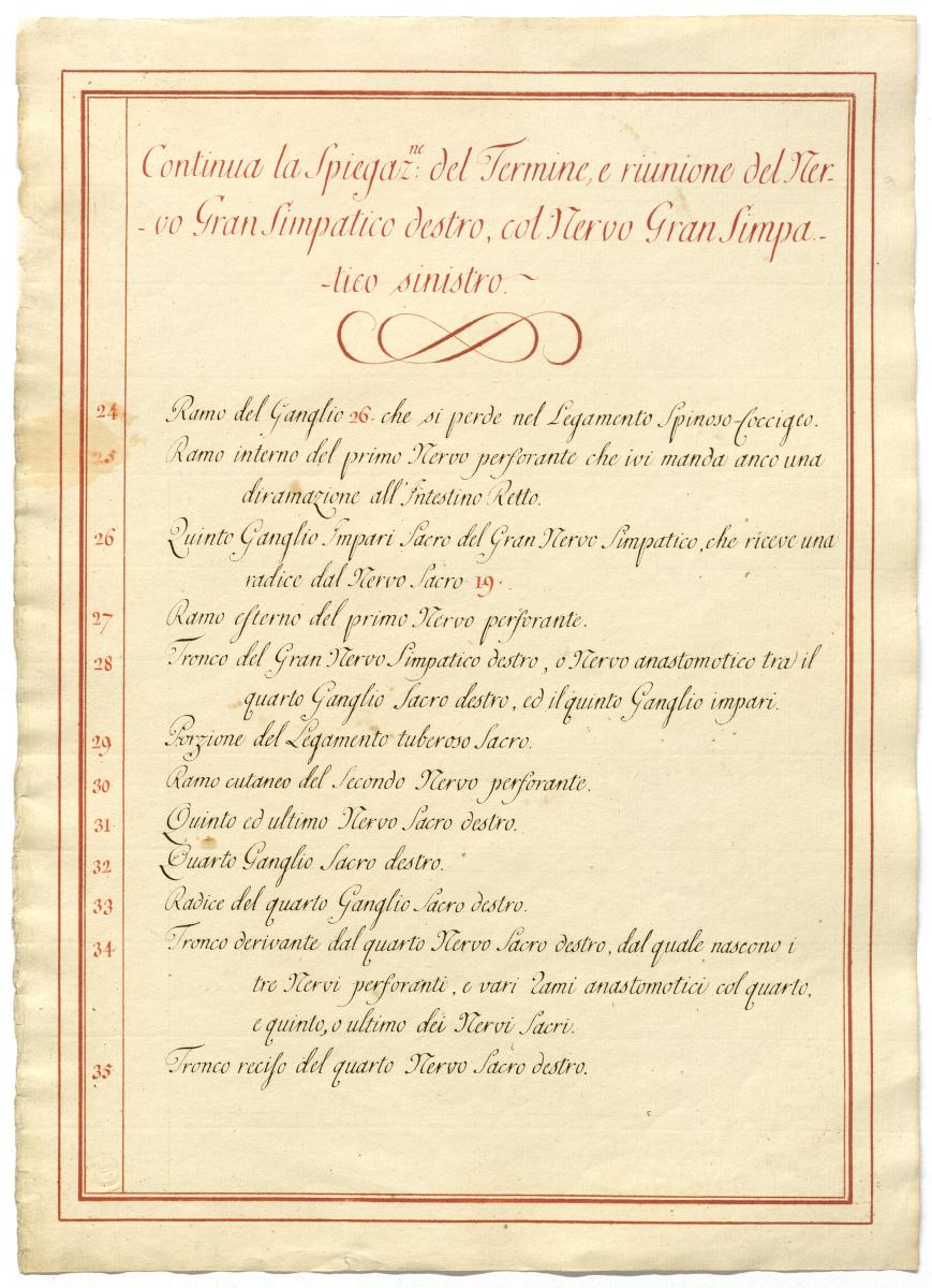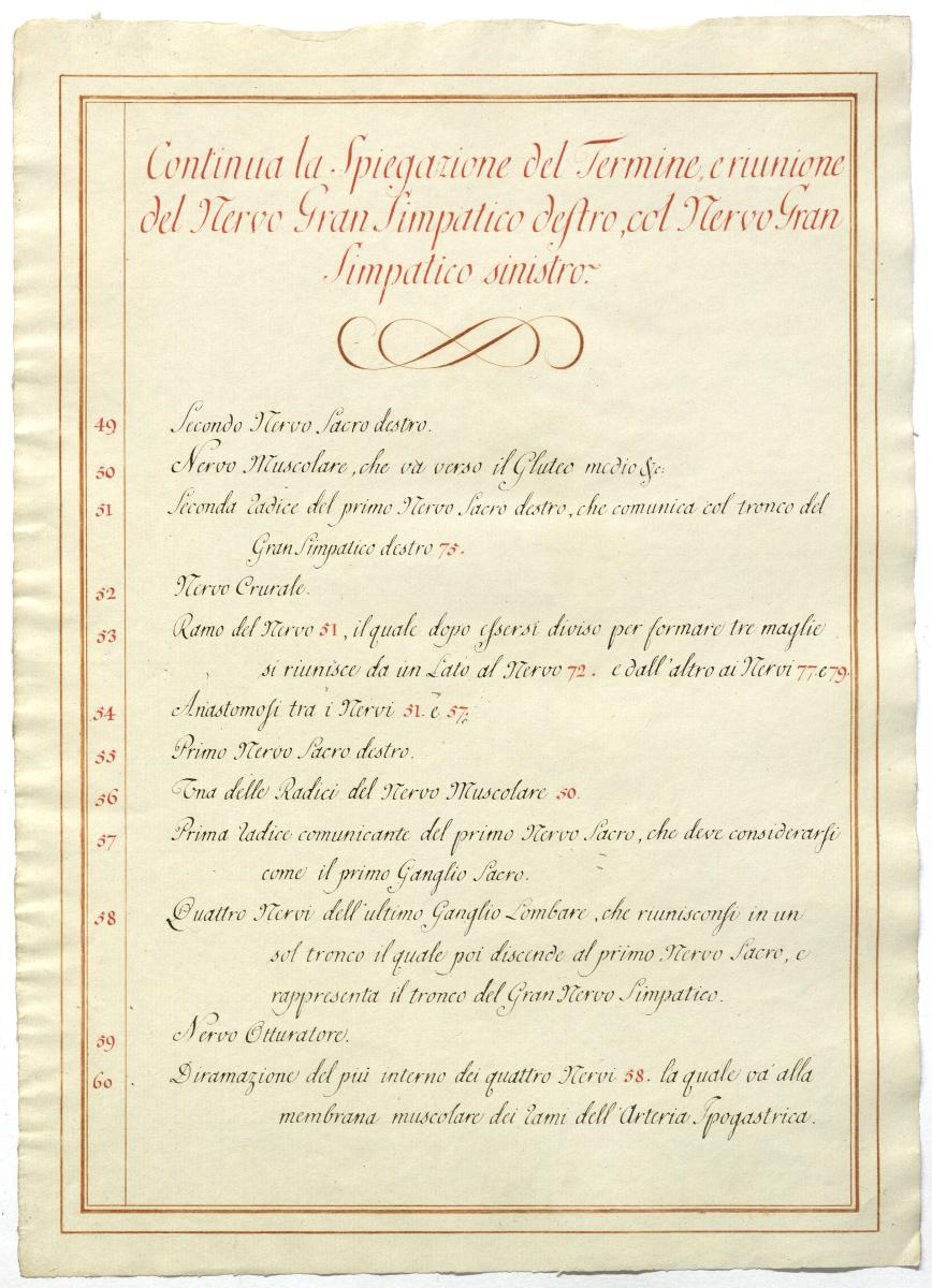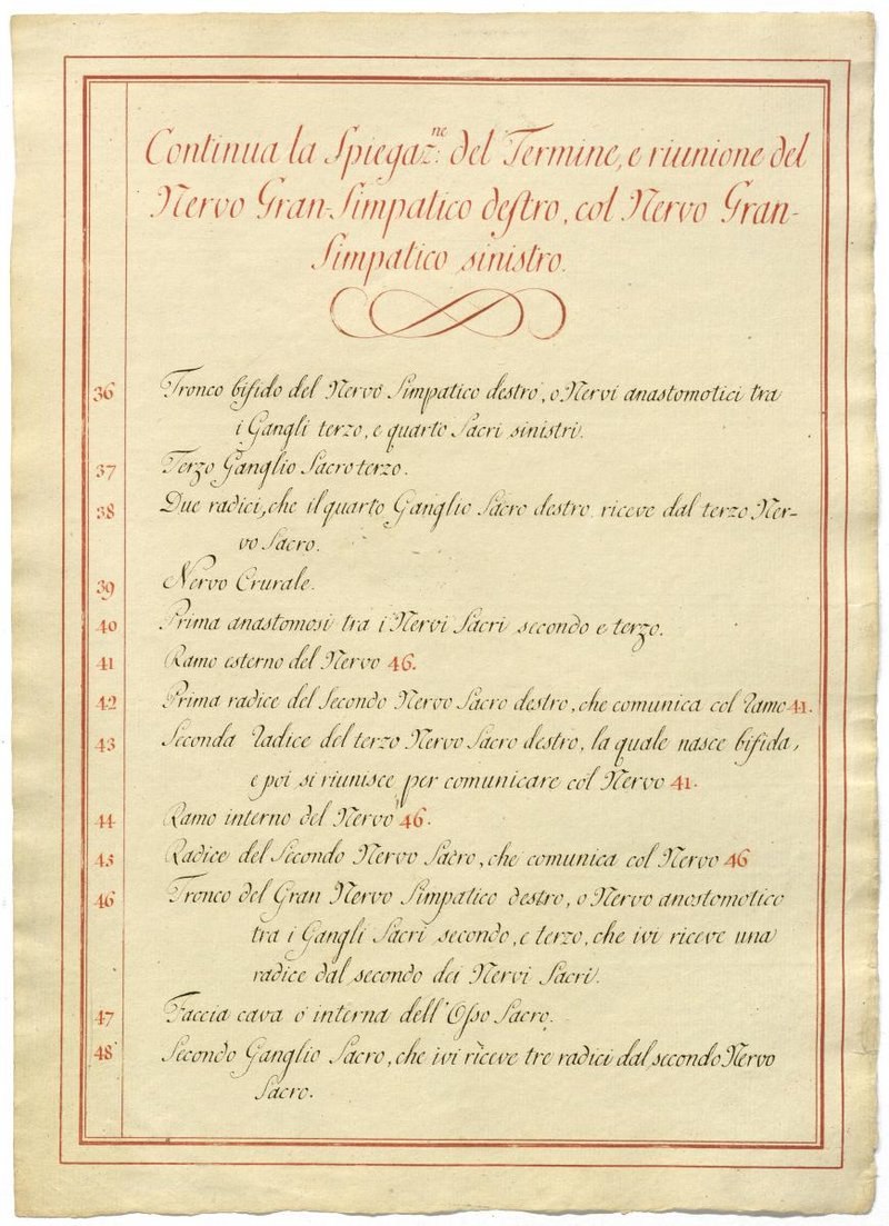 Der Text ist die ergänzende Beschreibung in italienischer Sprache zum anatomischen Wachsmodell des Grenzstranges des sympathischen Nervensystems.