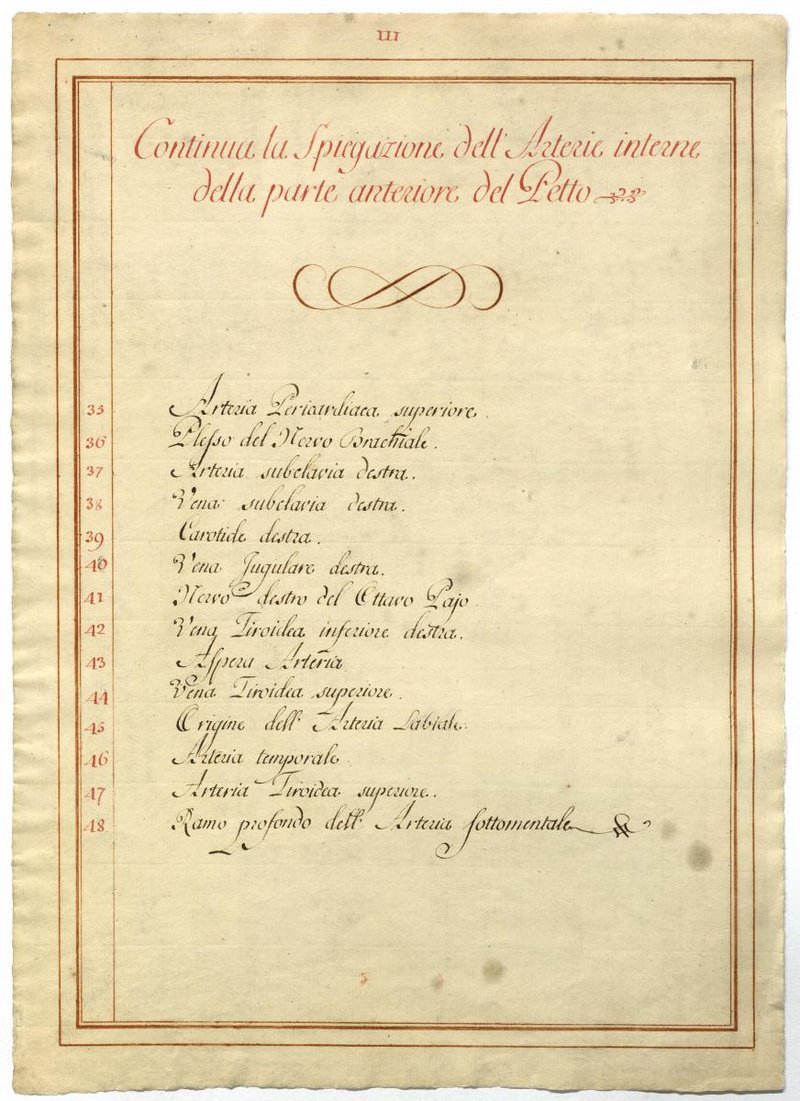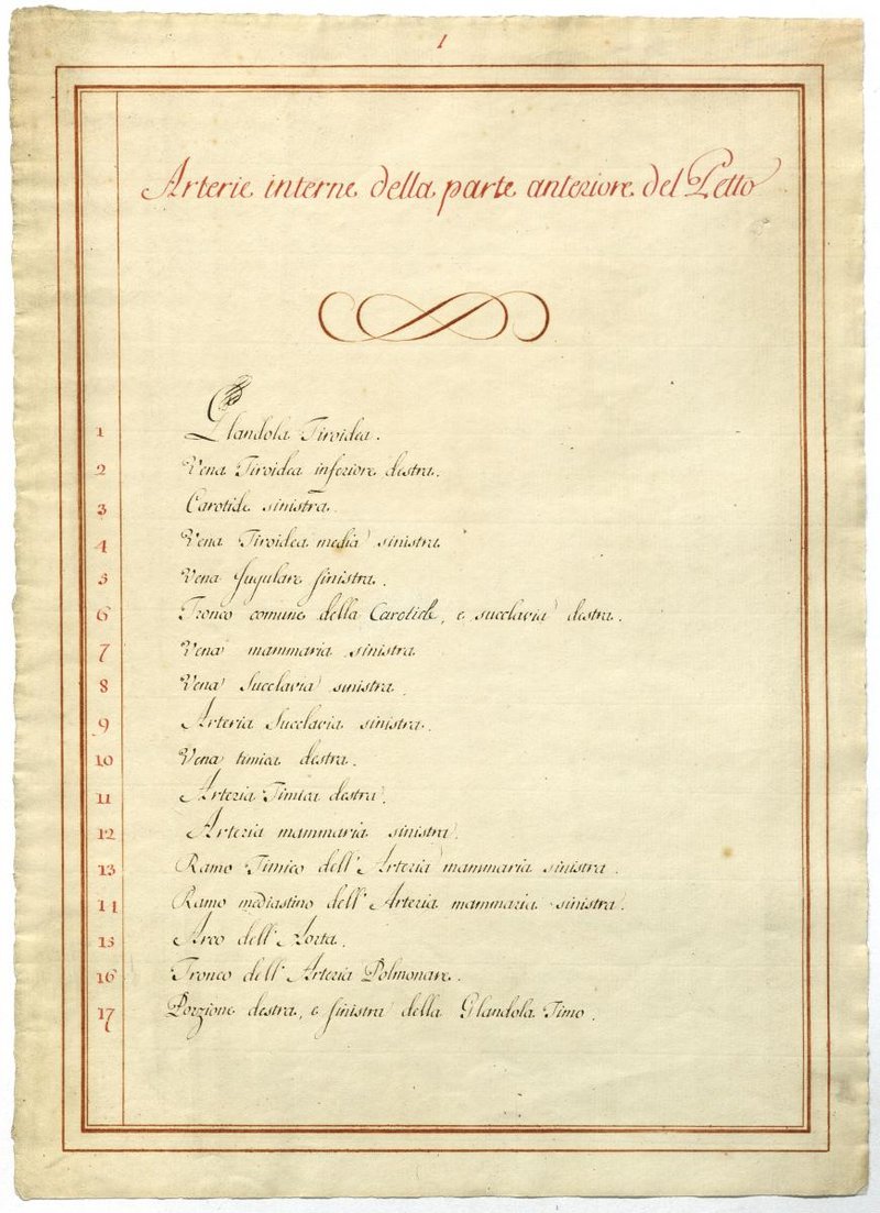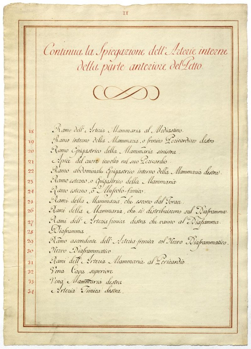 Der Text ist die ergänzende Beschreibung in italienischer Sprache zum anatomischen Wachsmodell der Hirnarterien.