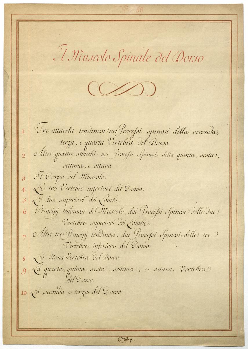 Der Text ist die ergänzende Beschreibung in italienischer Sprache zum anatomischen Wachsmodell der autochthonen Rückenmuskeln.
