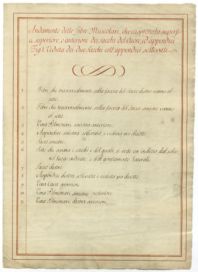Der Text ist die ergänzende Beschreibung in italienischer Sprache zum anatomischen Wachsmodell des Herzens.