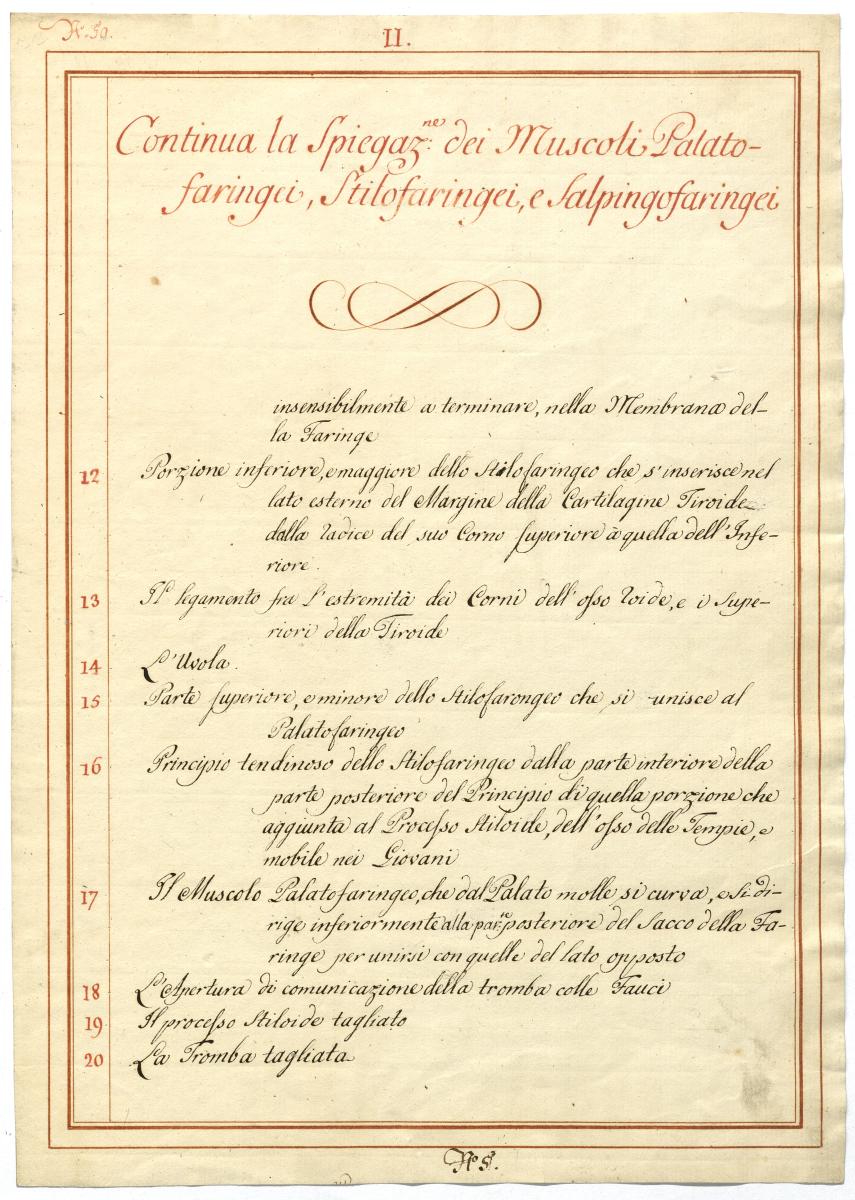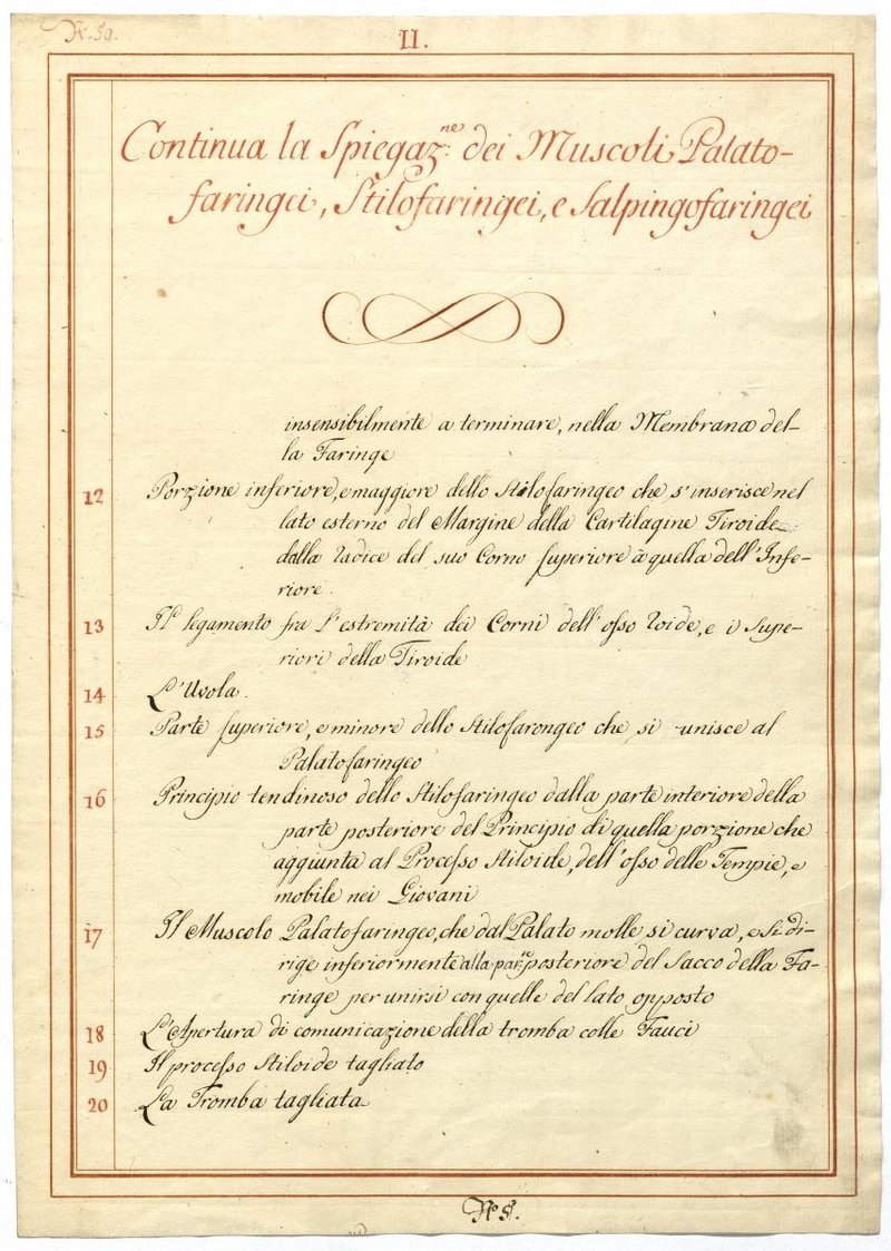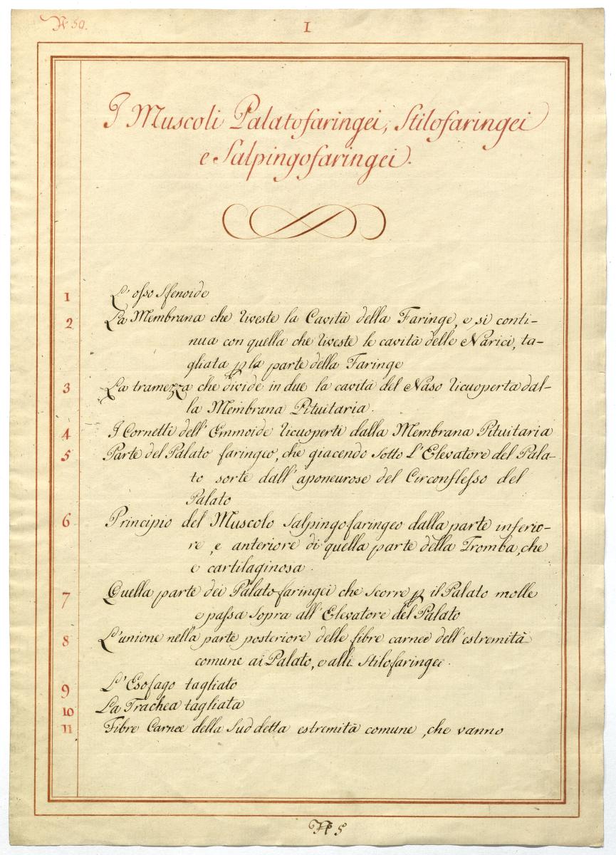 Der Text ist die ergänzende Beschreibung in italienischer Sprache zum anatomischen Wachsmodell der Rachenmuskulatur.