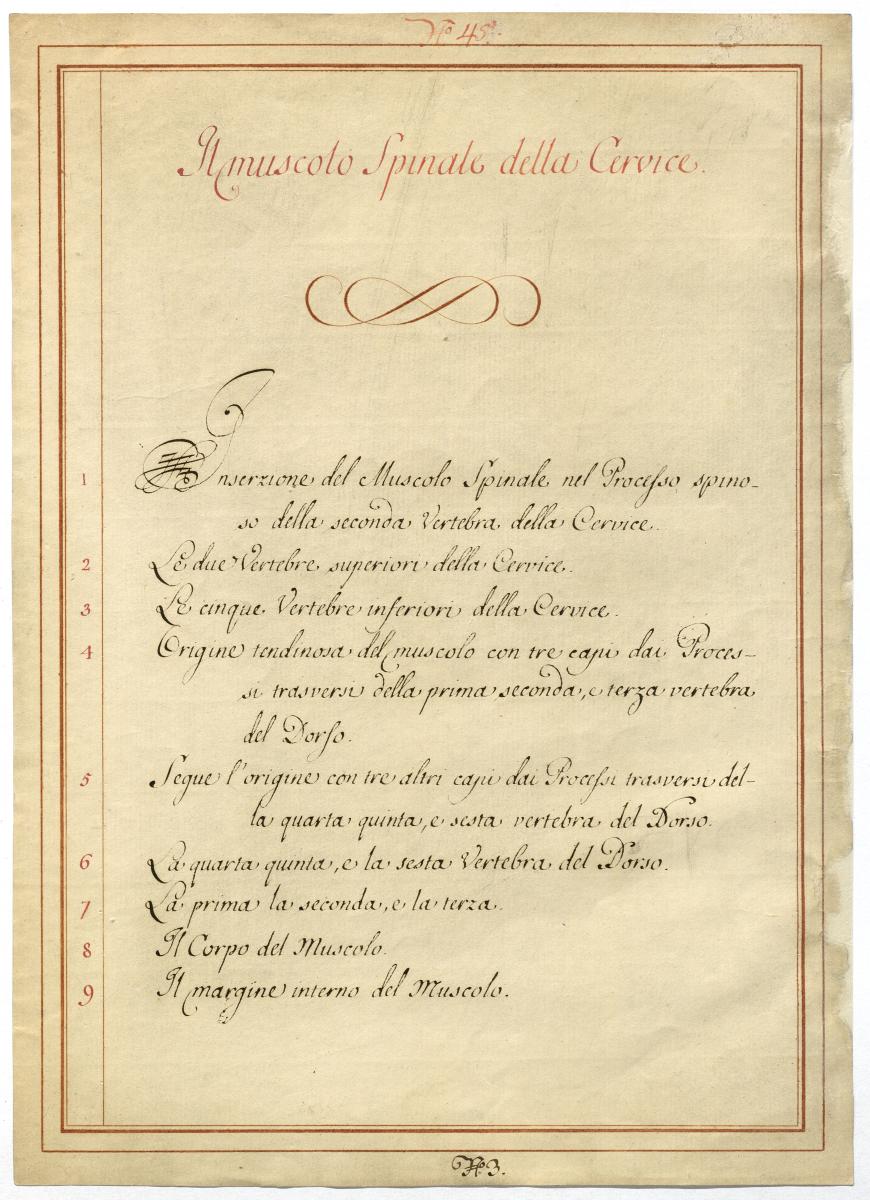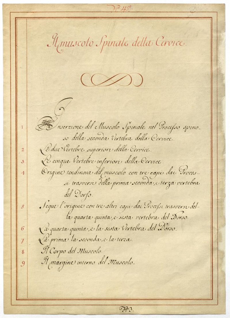Der Text ist die ergänzende Beschreibung in italienischer Sprache zum anatomischen Wachsmodell der autochthonen Muskeln des Halses.