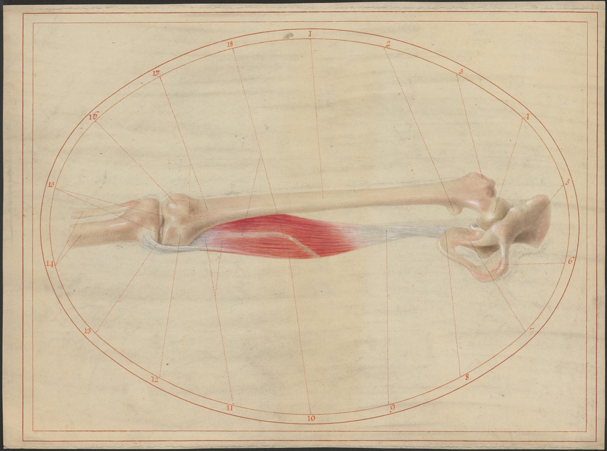 Beckenknochen (Beckenschaufel entfernt), Oberschenkelknochen und proximale Tibia sowie Fibula der rechten unteren Extremität von vorne: Musculus semimembranosus.
