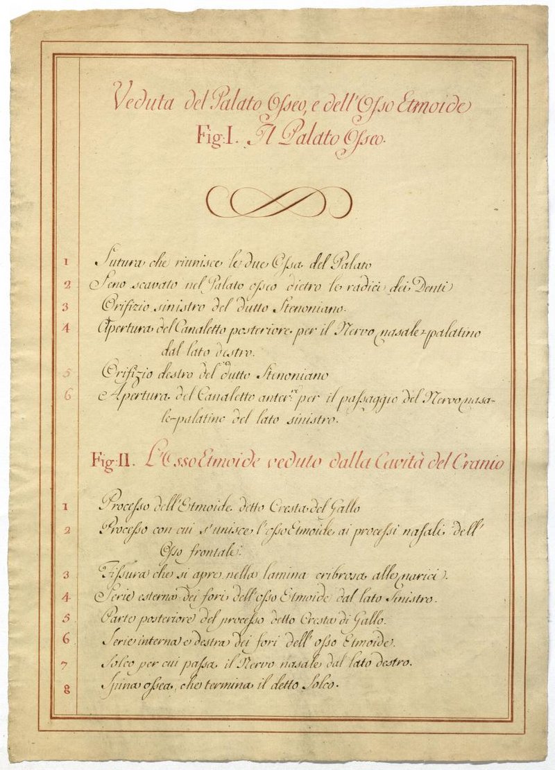 Der Text ist die ergänzende Beschreibung in italienischer Sprache zum anatomischen Wachsmodell der Riechregion.