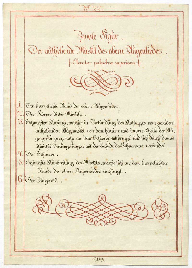 Der Text ist die ergänzende Beschreibung in deutscher Sprache zum anatomischen Wachsmodell der Augenmuskeln.