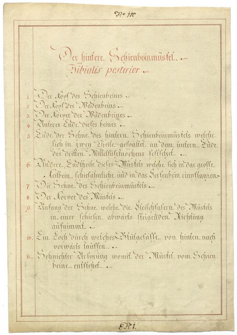 Der Text ist die ergänzende Beschreibung in deutscher Sprache zum anatomischen Wachsmodell der Schienbeinmuskulatur.