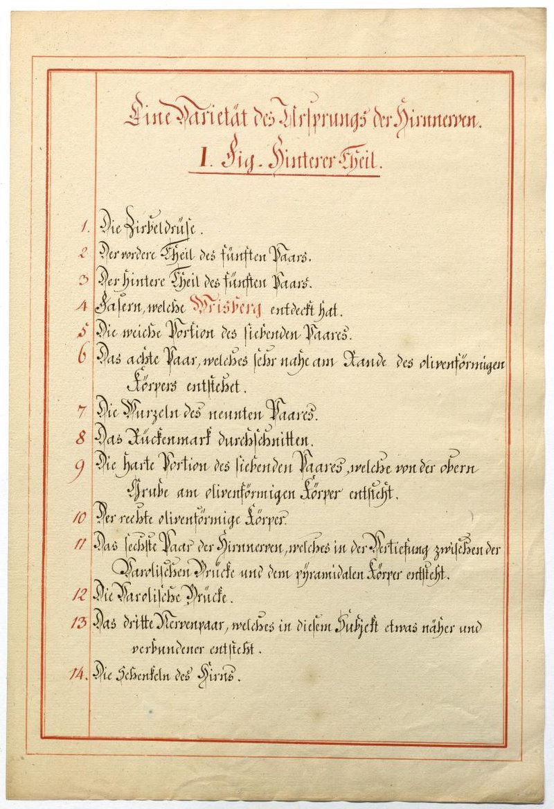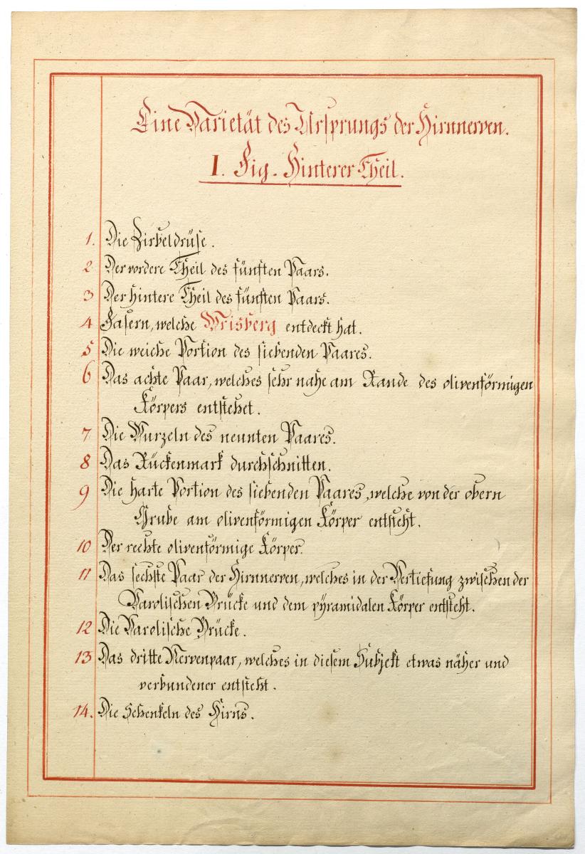 Der Text ist die ergänzende Beschreibung in deutscher Sprache zum anatomischen Wachsmodell der Hirnbasis.