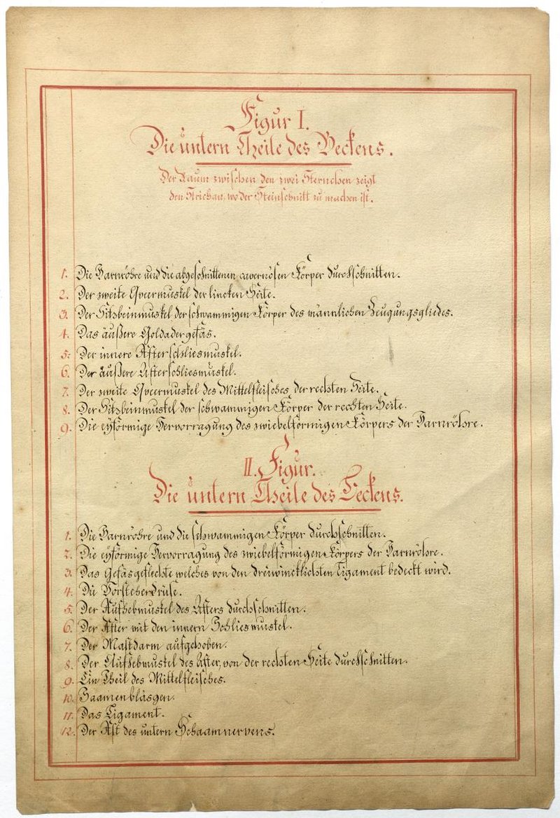 Der Text ist die ergänzende Beschreibung in deutscher Sprache zum anatomischen Wachsmodell der Beckenbodenmuskulatur beim Mann.