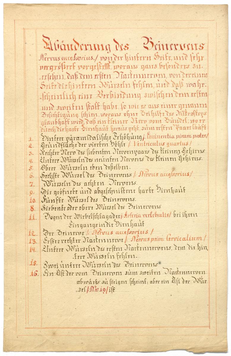 Der Text ist die ergänzende Beschreibung in deutscher Sprache zum anatomischen Wachsmodell des Nervus accessorius.
