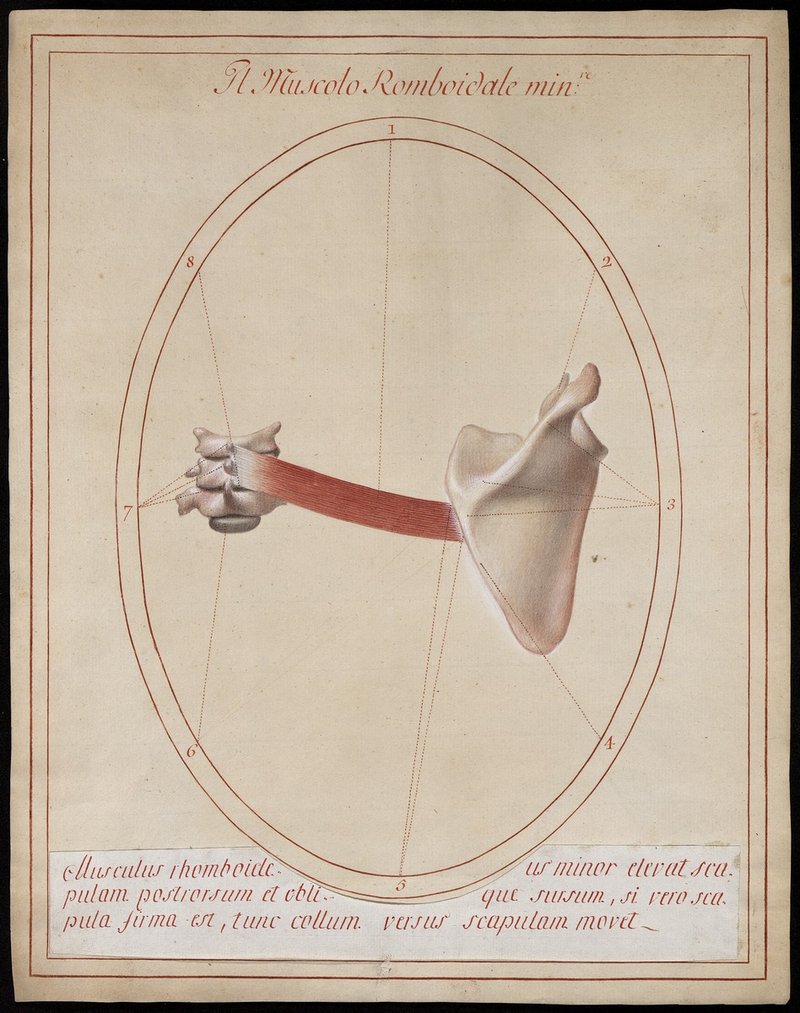 Der kleine rautenförmige Muskel (M. rhomboideus minor).