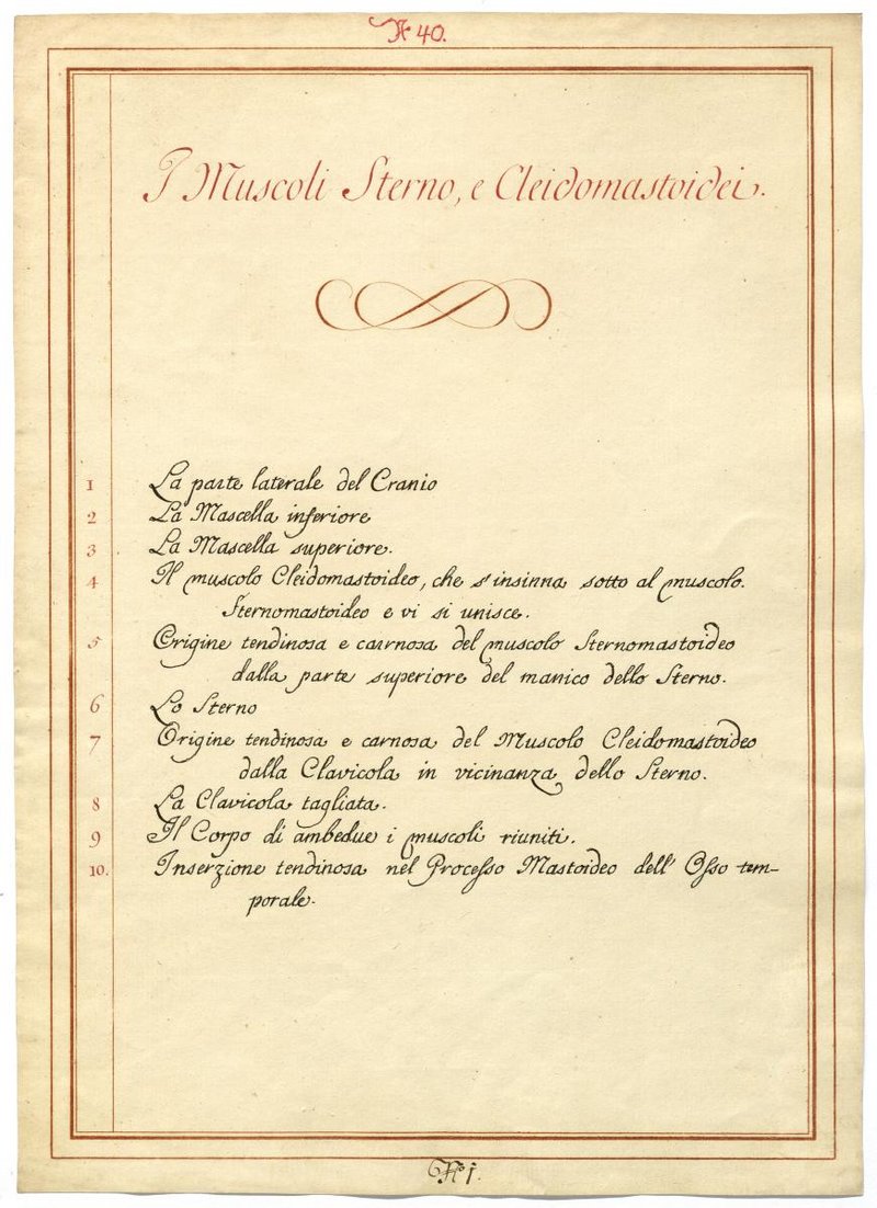 Der Text ist die ergänzende Beschreibung in italienischer Sprache zum anatomischen Wachsmodell der Muskeln des Halses.