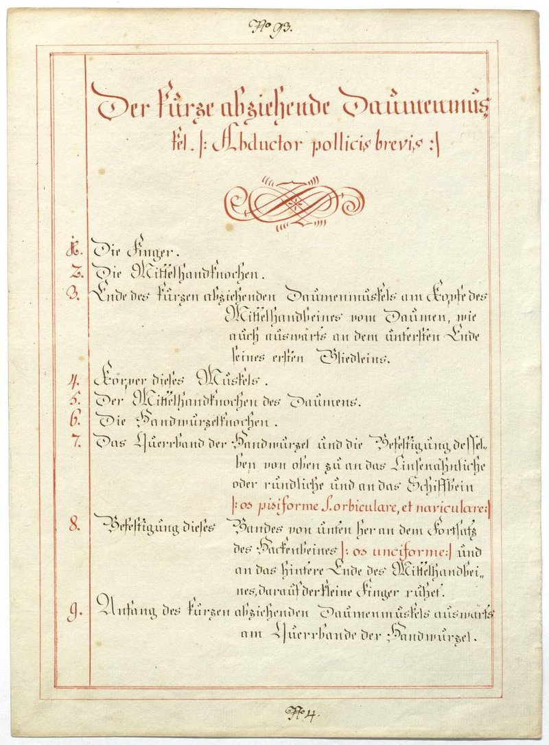 Der Text ist die ergänzende Beschreibung in deutscher Sprache zum anatomischen Wachsmodell der Handmuskulatur.