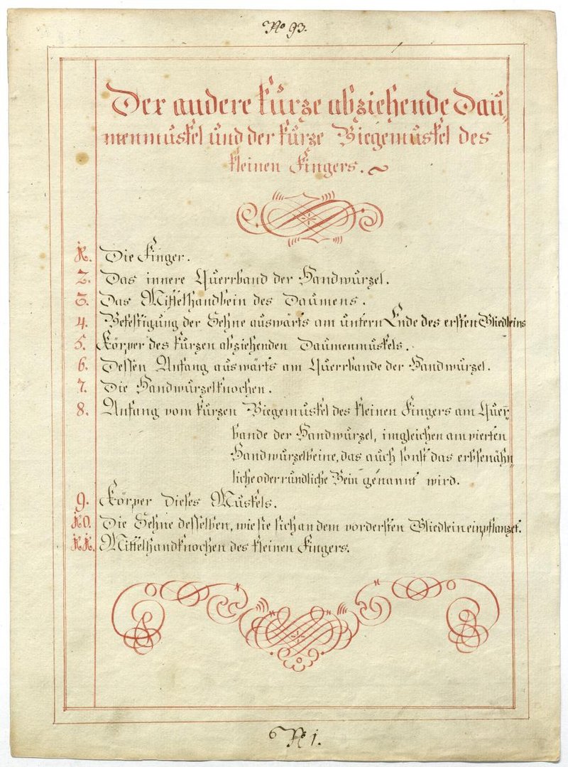 Der Text ist die ergänzende Beschreibung in deutscher Sprache zum anatomischen Wachsmodell der Handmuskulatur.