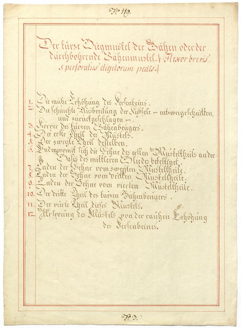 Der Text ist die ergänzende Beschreibung in deutscher Sprache zum anatomischen Wachsmodell der Muskeln der Fußsohle.