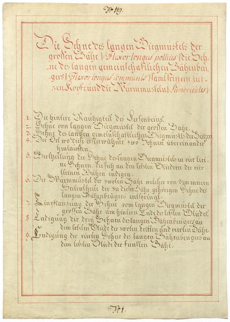 Der Text ist die ergänzende Beschreibung in deutscher Sprache zum anatomischen Wachsmodell der Muskeln der Fußsohle.