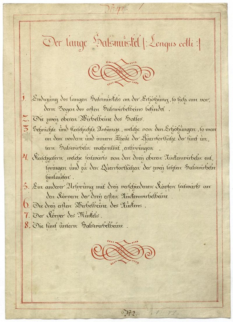 Der Text ist die ergänzende Beschreibung in deutscher Sprache zum anatomischen Wachsmodell der autochthonen Muskeln des Nackens.