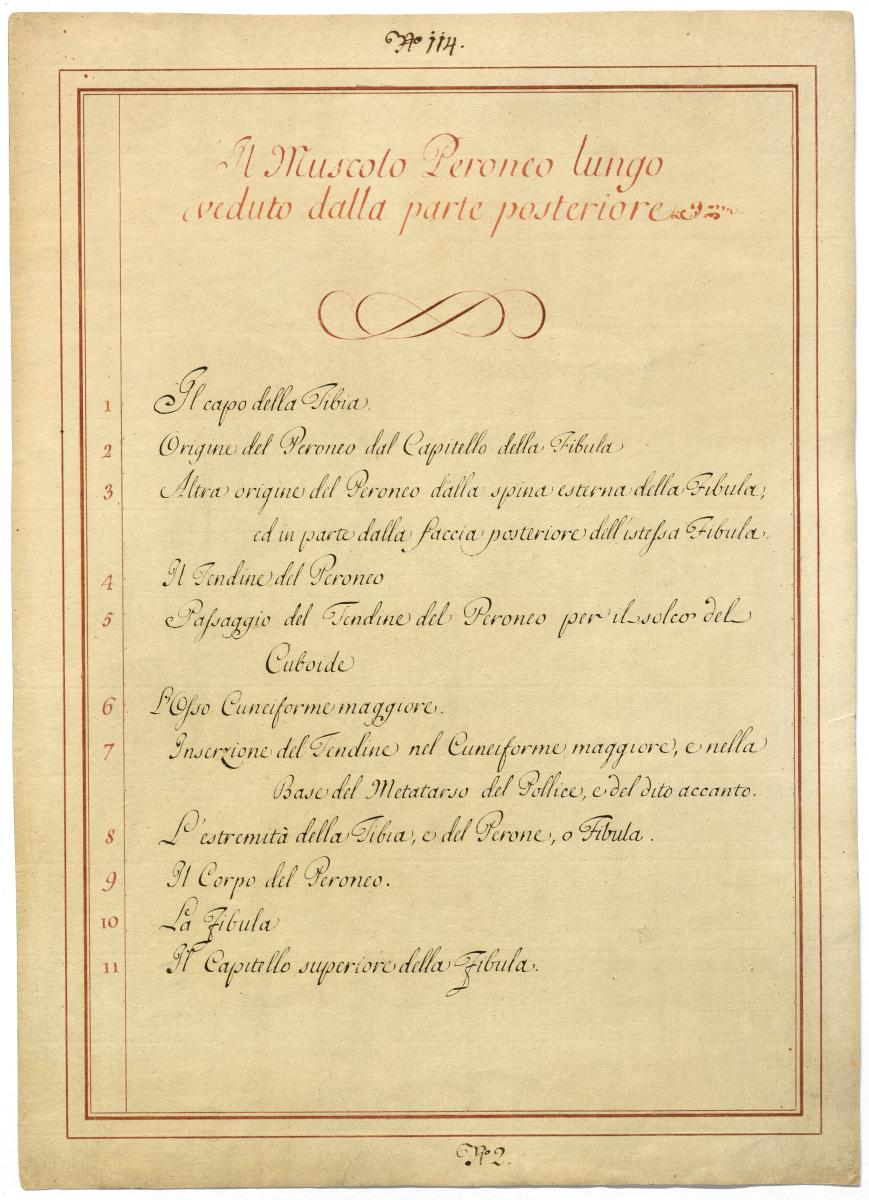Der Text ist die ergänzende Beschreibung in italienischer Sprache zum anatomischen Wachsmodell der Wadenbeinmuskulatur.