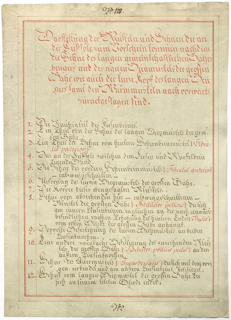 Der Text ist die ergänzende Beschreibung in deutscher Sprache zum anatomischen Wachsmodell der Muskeln der Fußsohle.