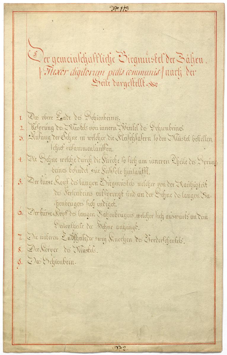 Der Text ist die ergänzende Beschreibung in deutscher Sprache zum anatomischen Wachsmodell der Muskeln der tiefen Beuger-Loge.