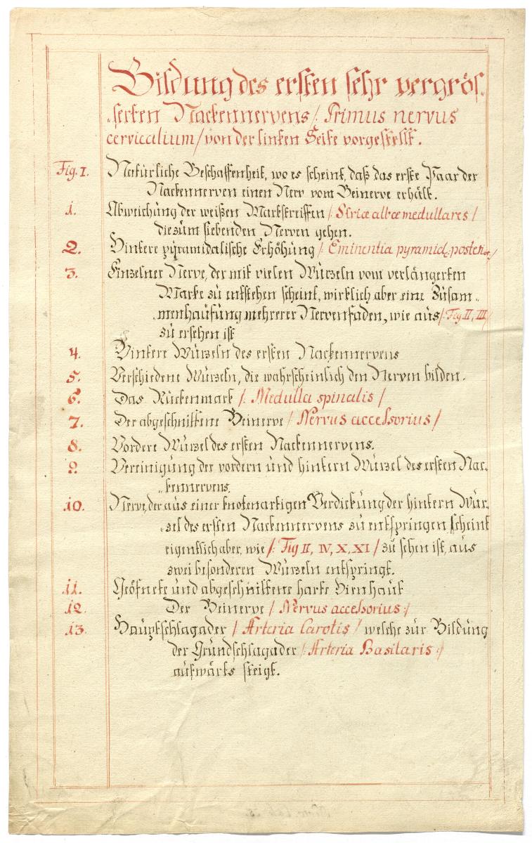 Der Text ist die ergänzende Beschreibung in deutscher Sprache zum anatomischen Wachsmodell des Nervus accessorius. Blatt 1 fehlt.